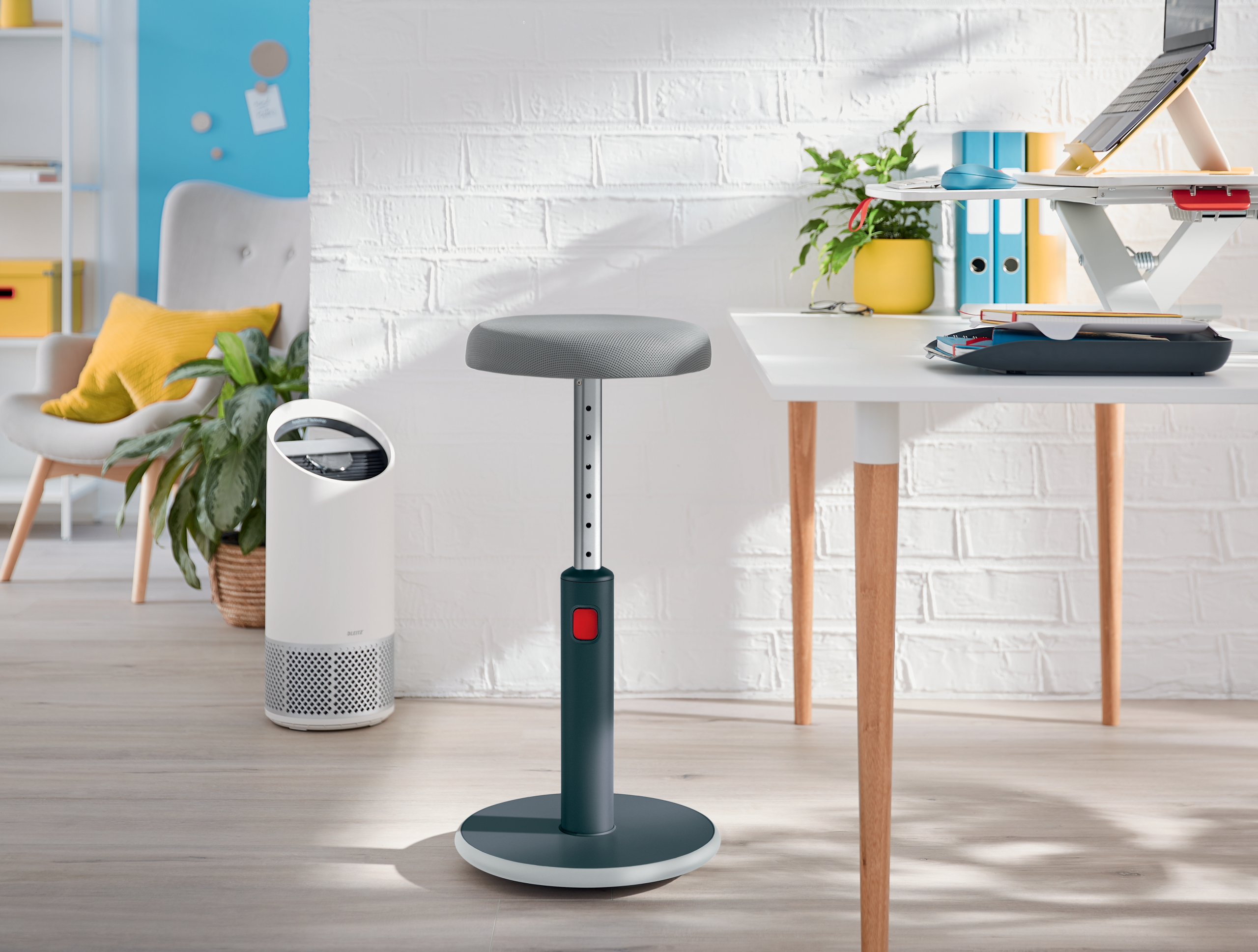 Leitz Ergo Active sid-stå balancestol giver fleksibilitet til at bevæge sig mellem siddende og stående position, mens du arbejder. Den giver muskelbevægelse, forbedrer kropsholdning og øger energiniveauet. 2 i 1 da du kan justere højden til perfekt siddehøjde som på en kontorstol men også til perfekt ståhøjde med betydelig højere justering end andre standard balancestole. Den har en afrundet bund for at sikre aktiv bevægelse ved at dreje og vugge, mens du arbejder på at styrke din ryg. Højden kan let justeres mellem 46-79 cm, og den stående balancestol forbliver stærk og stabil i enhver højde. Komfortabel og praktisk – den ergonomiske stol har et åndbart, 3D-luft skumsæde og en skridsikker base, der ikke beskadiger gulvet. Med sit minimalistiske design og matte finishfarver vil denne stilfulde stående skrivebordsstol forbedre sundhed og velvære ved ubesværet at skabe den perfekte aktive arbejdsopsætning. Kombiner med andre Leitz Ergo-produkter til et indbydende og fleksibelt arbejdsområde, der holder dig i bevægelse hele dagen.
