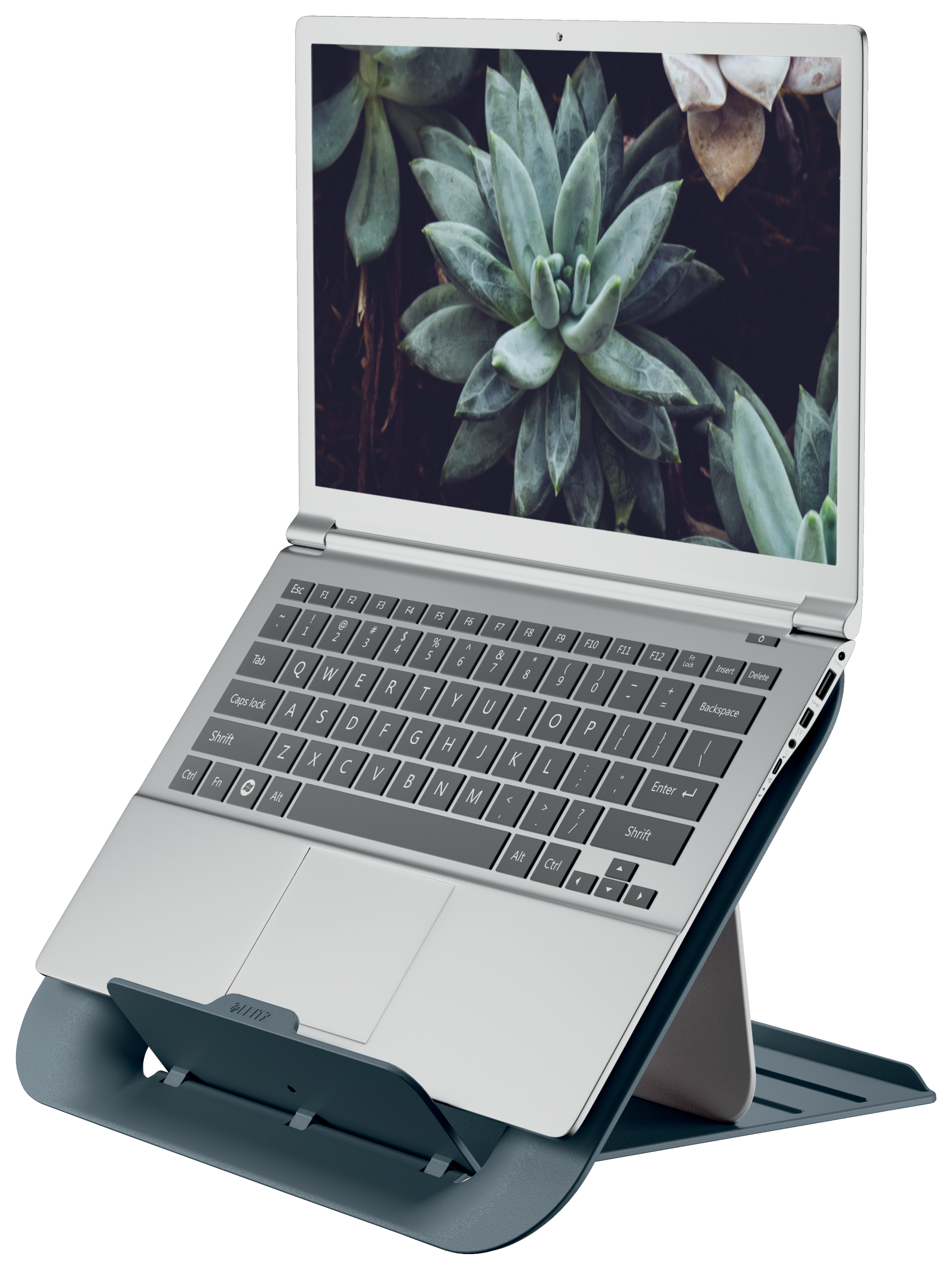 Ergonomisk laptop stand for maksimal komfort produceret af 80% post consumer recirkuleret plast. Let at justere til den korrekte højde. Moderne og minimalistisk design, som holder dig i bevægelse.