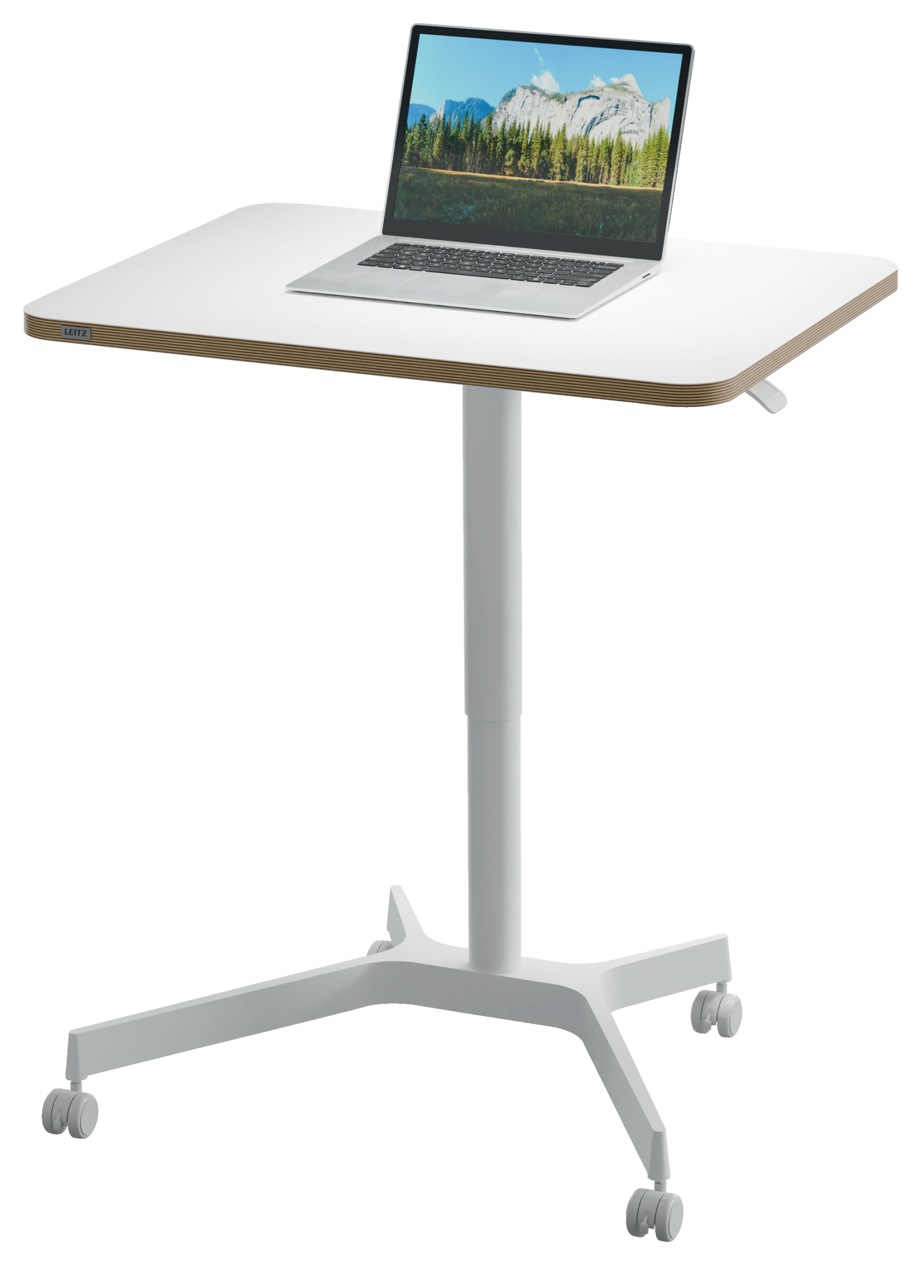 SID – STÅ – BEVÆG DIG. Uanset om du stræber efter en sundere livsstil eller vil undgå gener, når du arbejder, vil vores pladsbesparende mobile hæve-sænke-bord løfte din arbejdsplads til nye højder. Det kompakte design med en 80 x 60 cm bordplade er ideelt til fleksibel brug og som et midlertidigt skrivebord, hvor pladsen er begrænset. Perfekt som et lille skrivebord til hjemmekontoret eller til hot desking-områder eller mødelokaler med plads til en bærbar computer, et tastatur og andet tilbehør, f.eks. håndledsstøtter og musemåtter. Kombiner med de smarte Leitz Ergo pegboard organiseringstavler (kan købes separat) for at skabe vertikal opbevaring og holde dit skrivebord ryddeligt. Dette skrivebord har en smidig pneumatisk højdejustering, så du kan finde den perfekte ergonomiske position. IGR og TÜV certificeret. Det er nemt at skifte mellem at sidde og stå for at fremme muskelbevægelse, hvilket kan have en positiv indvirkning på velbefindende. De 4 låsbare hjul gør skrivebordet let at flytte, når det er nødvendigt. Dette moderne og minimalistiske hæve-sænke-skrivebord er ideelt til hjemmet eller kontoret for at øge komforten og maksimere produktiviteten. Det er vores mission at levere løsninger, der kan give mennesker mulighed for at trives på arbejdet og derudover fremme positiv mental sundhed og fysisk velbefindende. Kombiner med mange andre Leitz Ergo-produkter for at skræddersy din fleksible og individuelle sid, stå & bevæg-arbejdsstation. Hold dig aktiv og HAV DET GODT med Leitz.
