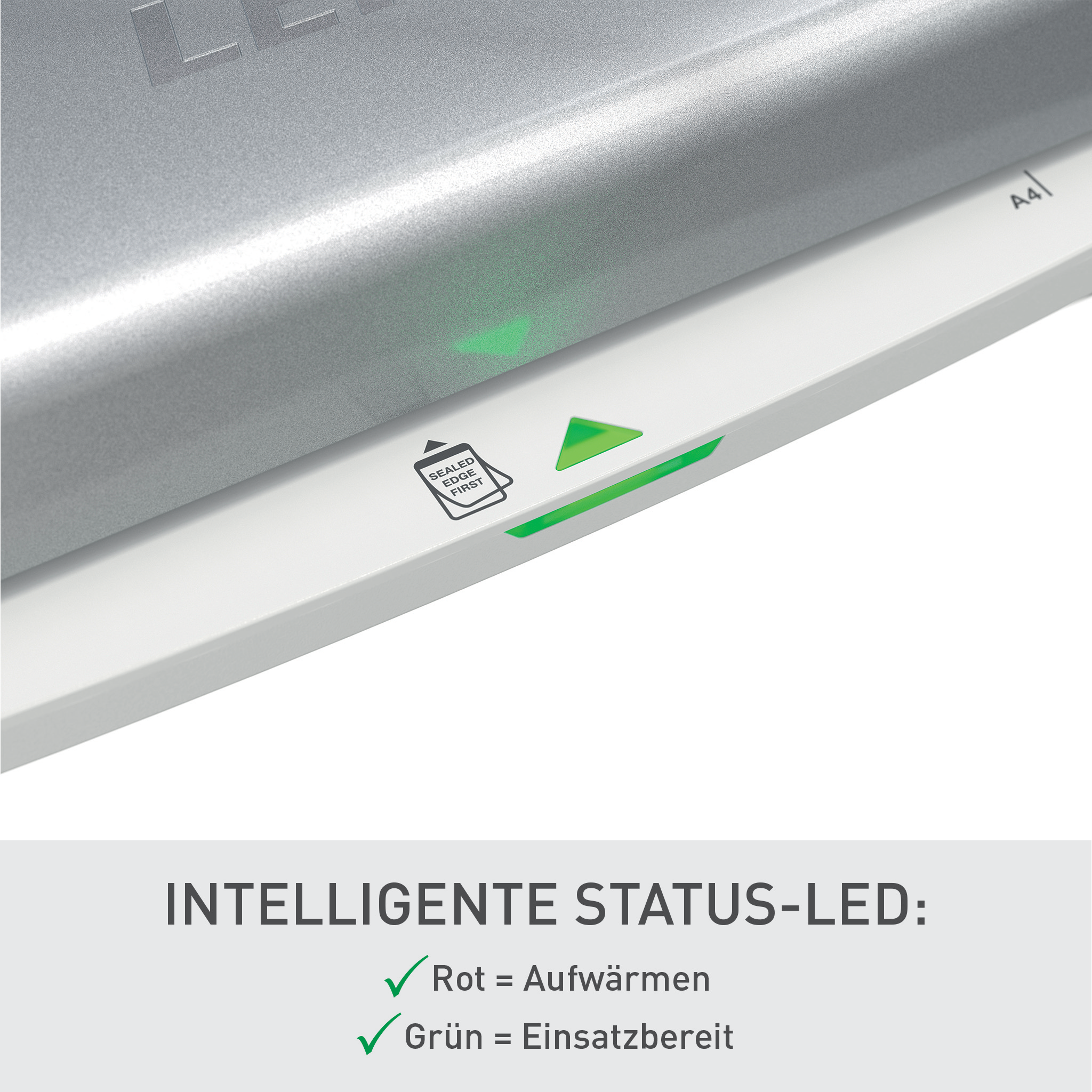 Den stilfulde og kompakte Leitz iLAM Home Office lamineringsmaskine kombinerer moderne design med funktionalitet. Denne A3-lamineringsmaskine er designet til at være praktisk og har en hurtig opvarmningstid på 2 minutter og kan laminere et 80-mikron A4-ark på bare 45 sekunder. Med den brugervenlige kontakt kan du vælge mellem tre niveauer for lommetykkelse, hvilket sikrer alsidig brug til alle dine lamineringsbehov. Udløserhåndtaget mod fastklemning garanterer problemfri drift ved ubesværet at løse eventuelle fejlindsatte eller fastklemte lamineringslommer. Den innovative, smarte status-LED øger brugervenligheden med intuitive lys og lyde: rød under opvarmning, grøn med en lydalarm, når den er klar, og blinkende rød for automatisk slukning efter 15 minutters inaktivitet. Beskyt dine dokumenter hurtigt, effektivt og med stil. Sølv og hvid farve.