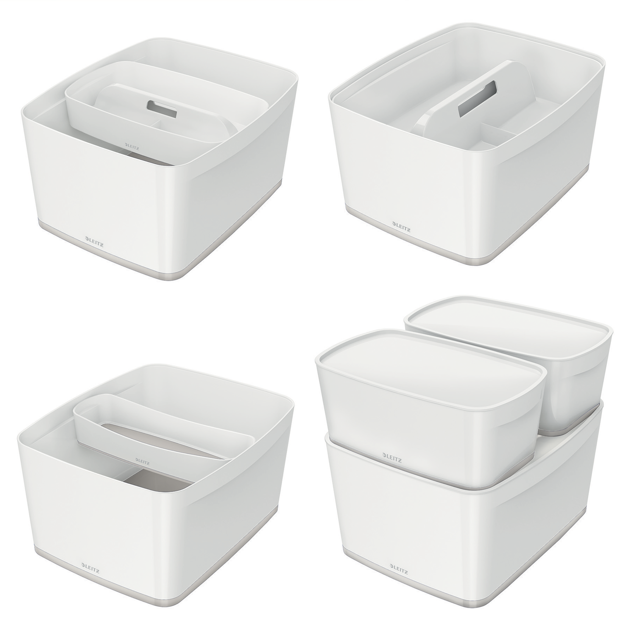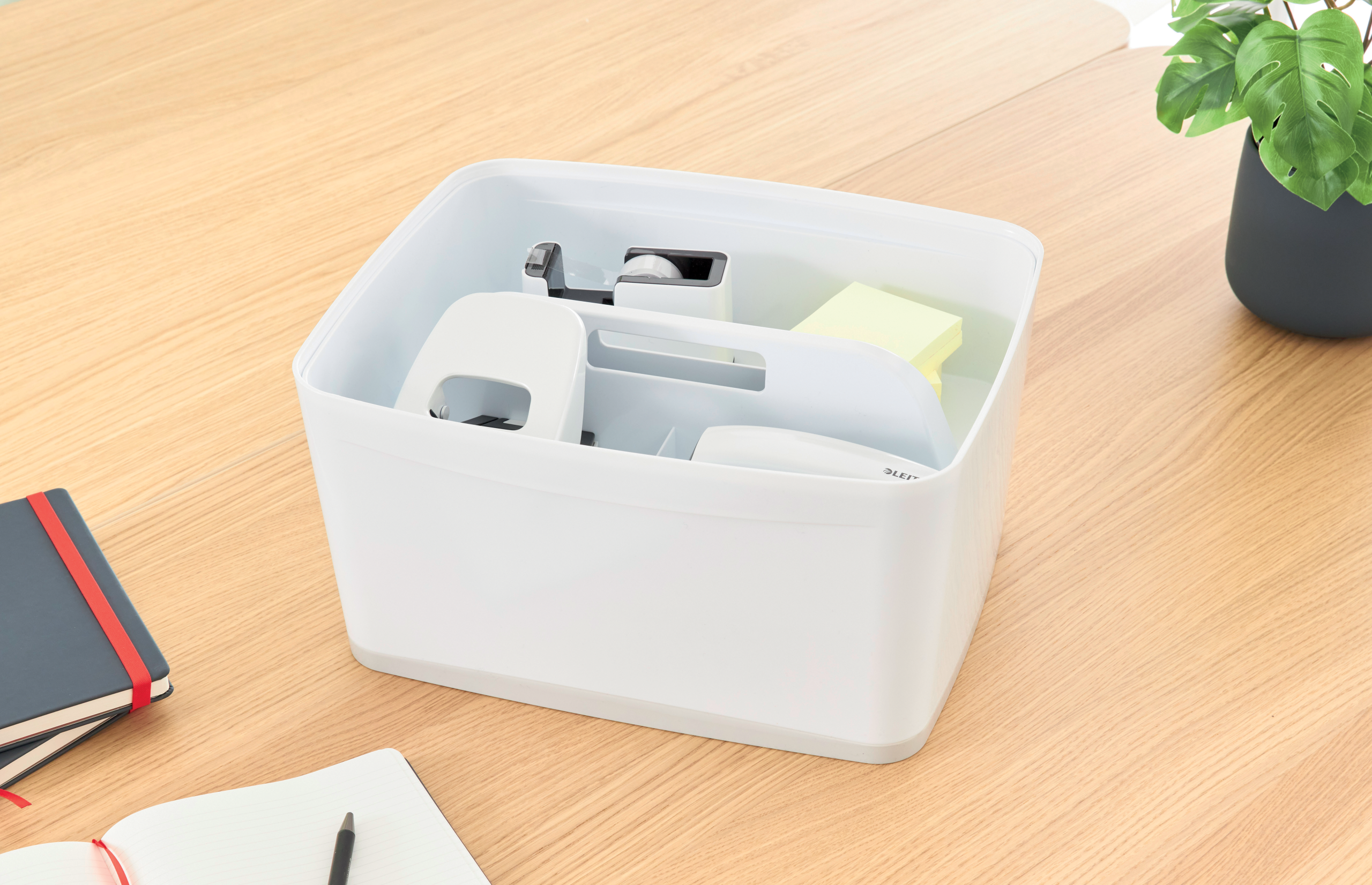 Leitz MyBox modulære opbevaringssystem giver en unik stil til dit hjem eller kontor. Opbevaringsboksen med tofarve effekt er meget robust og lavet af førsteklasses materiale med en mat finish. Hurtig, nem og stilfuld opbevaring på 18 liter til stort tilbehør til hjemmet eller kontoret, A4-dokumenter, magasiner og mad. Det modulære system giver mulighed for optimal indholdsstyring.