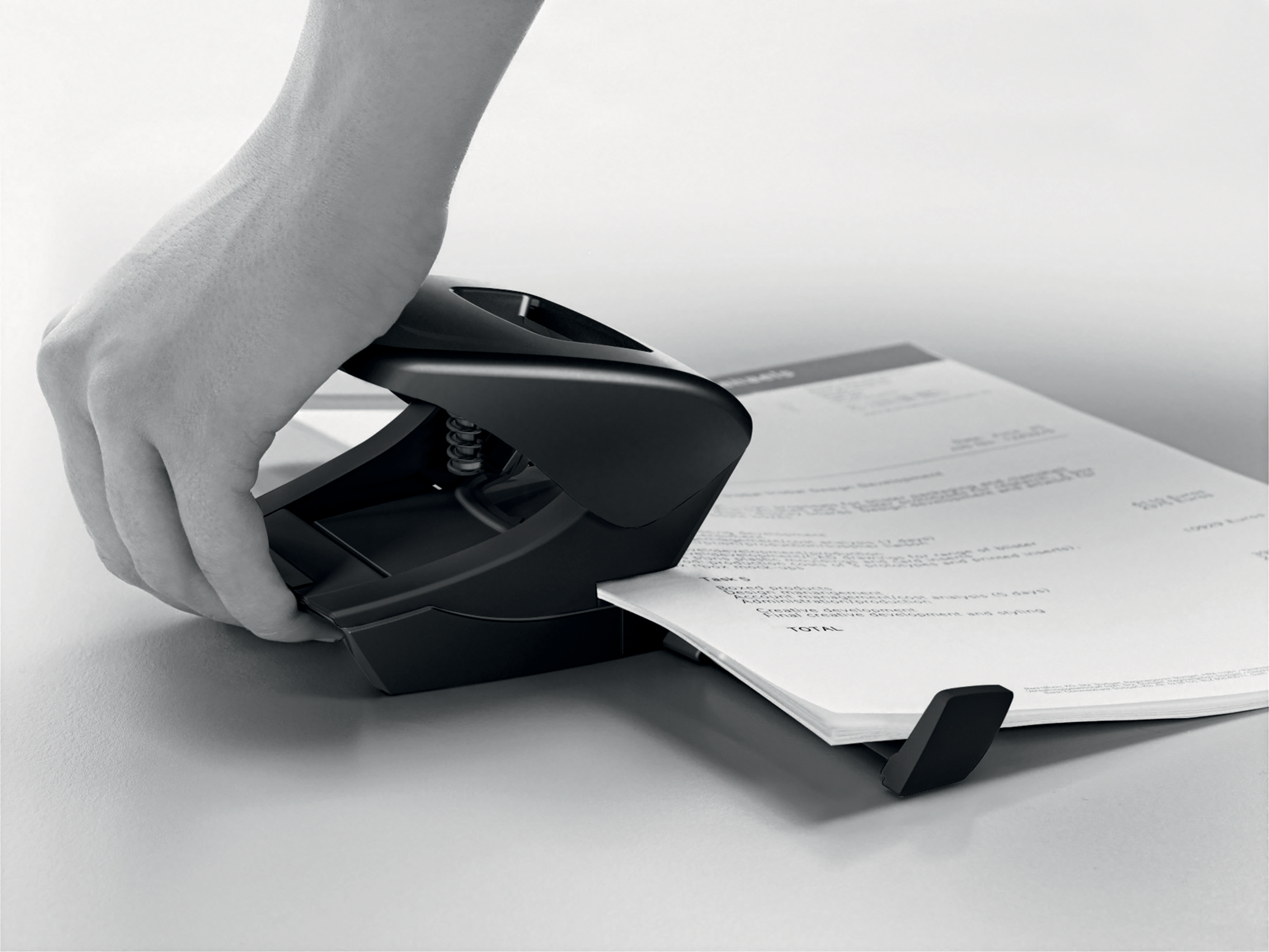 30 ark. Stål og recirkuleret plast, 100% recirkulerbar. Patenteret gribezone med let glidende greb og ultraskarpe hulpiber reducerer kraftanvendelse ved hulning. Iøjnefaldende design, førsteklasses kvalitet.