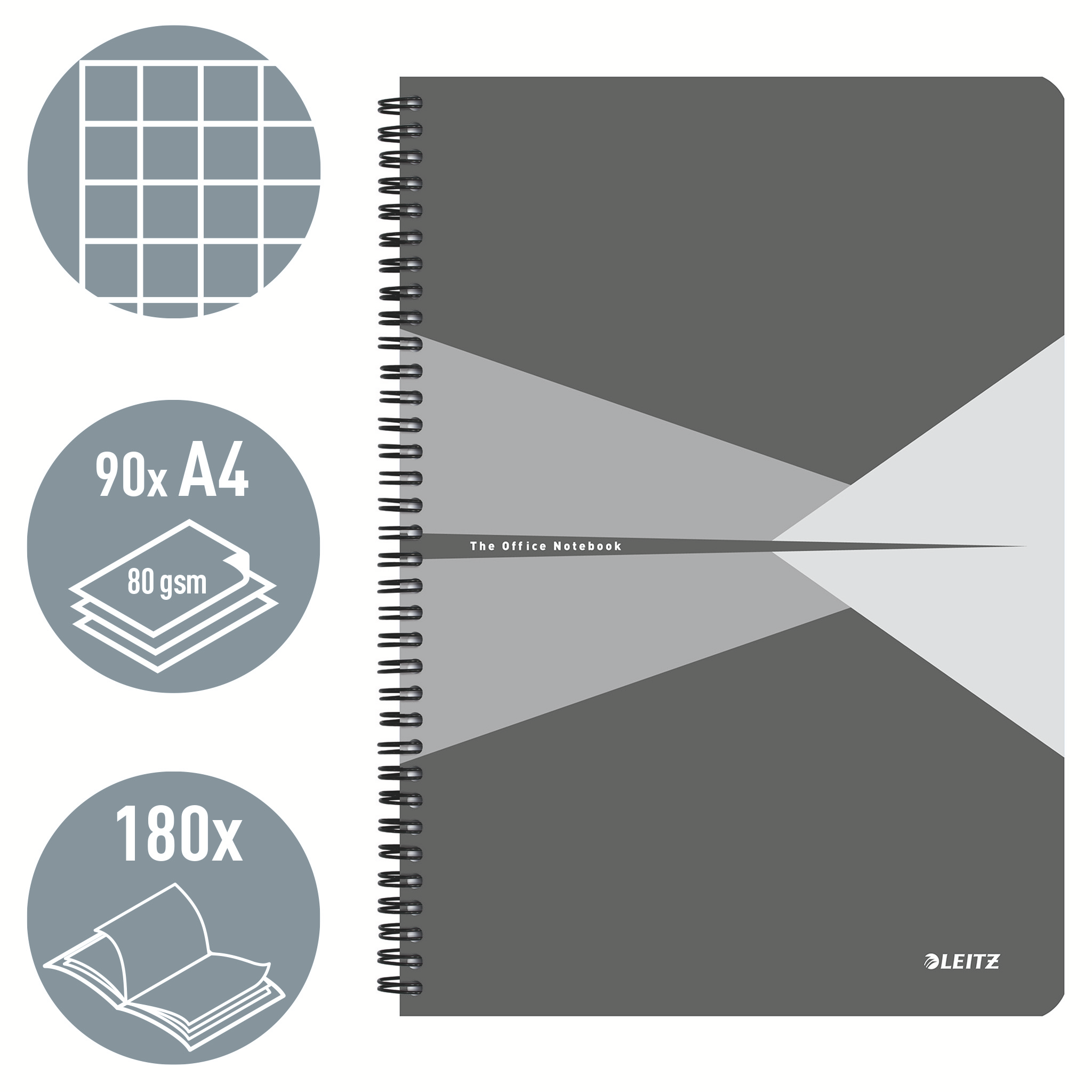 Leitz Office notesblok A4 kvadreret, wireindbundet med PP-omslag