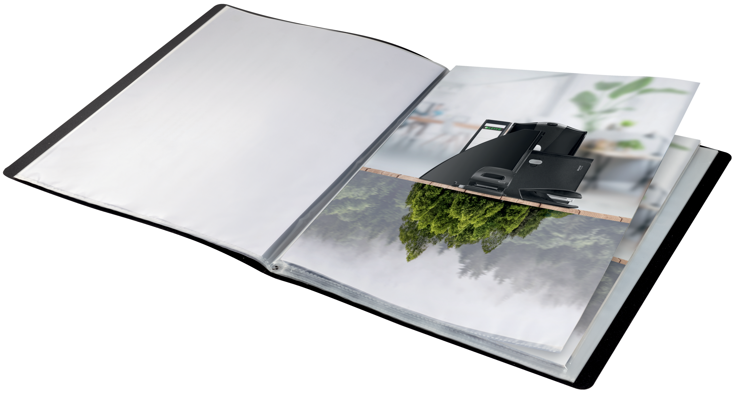 Iøjnefaldende PP displaybog i premium kvalitet til daglig brug i skole, kontor og hjem. 40 klare plastlommer fikseret inde i ryggen, ideel til at præsentere og bære trykte A4-tegninger, fotos og papirer. Fremstillet af 90% (blanding af præ- og post consumer) recirkuleret PP, 100% recirkulerbar. Denne robuste og praktiske displaybog supplerer perfekt andre produkter fra Leitz Recycle-serien og er lavet til at holde. Moderne og stilfulde kontorartikler, som vil passe ind på kontoret og i hjemmet.