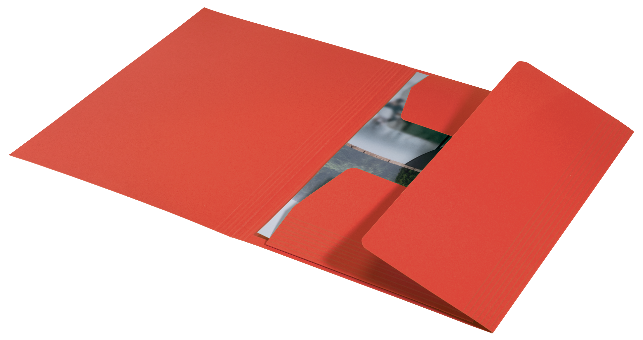 3-klap mappe af høj kvalitet til A4-dokumenter. 100% recirkuleret og recirkulerbar karton, certificeret med den Blå Engel.