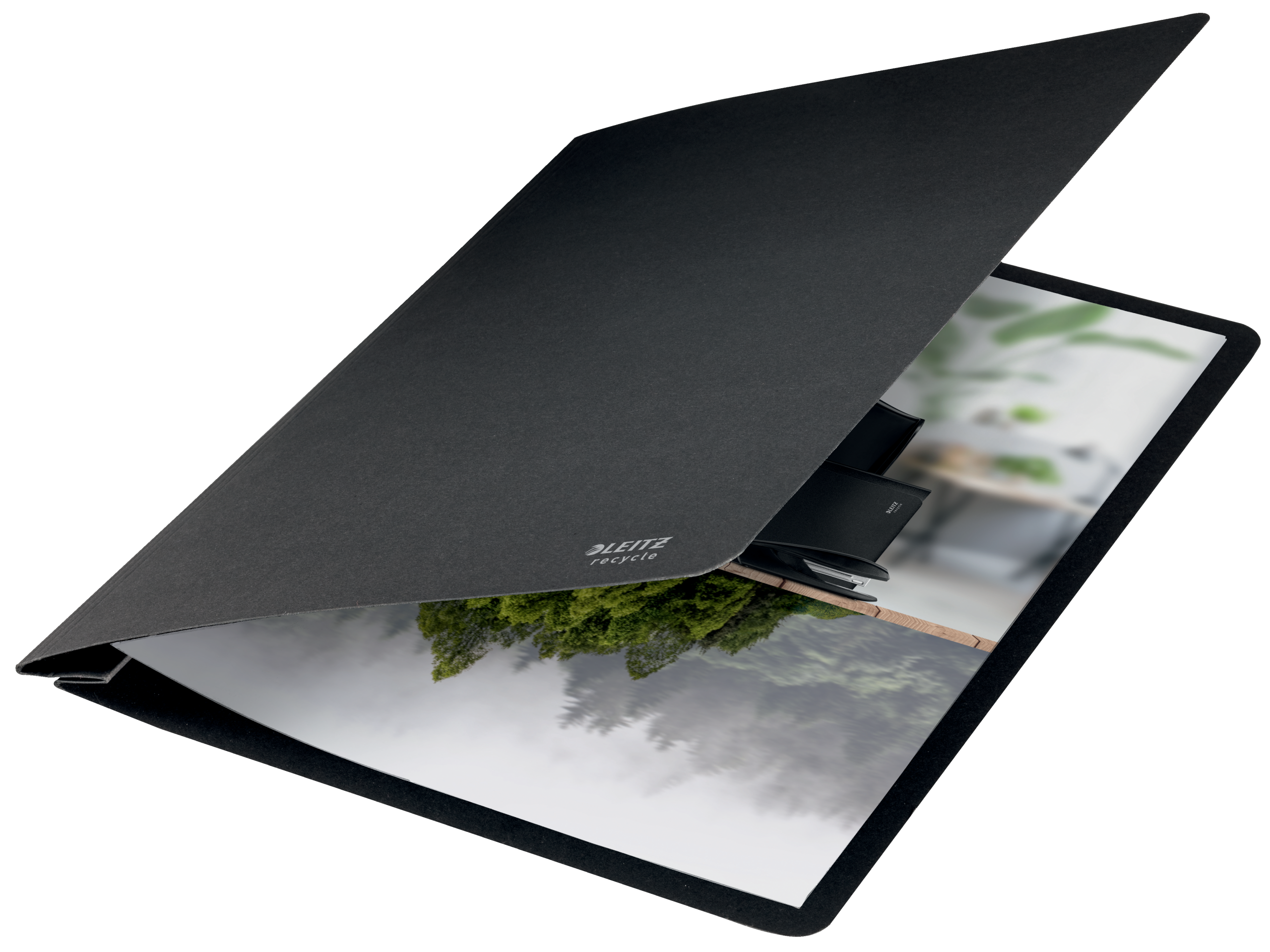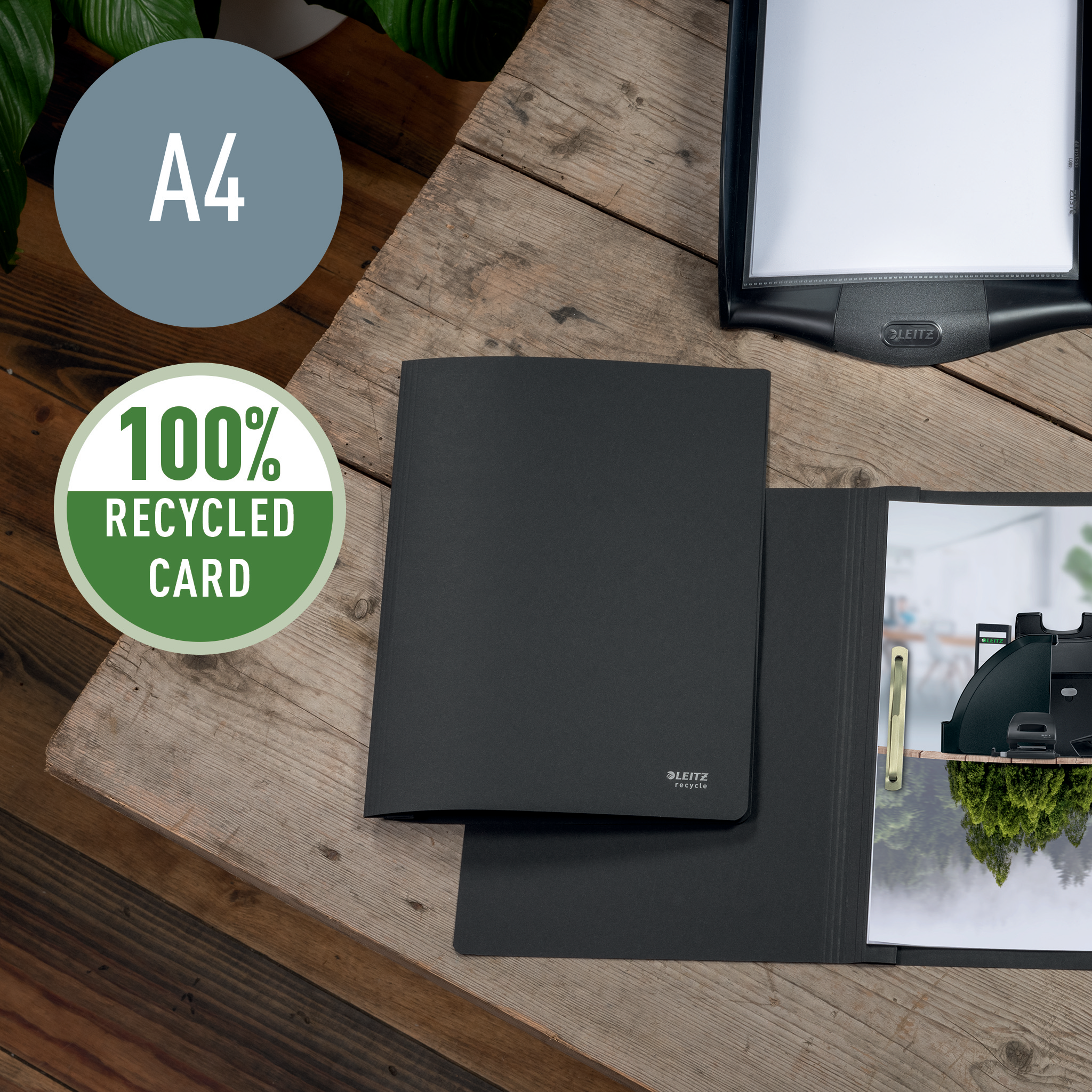 Iøjnefaldende, tilbudsmappe af premium kvalitet. Praktisk tilbudsmappe til dokumenter med en flad metalmekanisme, så det er let at isætte hullede dokumenter Fremstillet af 100% recirkuleret og recirkulerbar karton med Blå Engel miljøcertificering. Denne robuste og praktiske arbejsmappe supplerer perfekt andre produkter fra Leitz Recycle-serien og er lavet til at holde. Moderne og stilfulde kontorartikler, som vil passe ind på kontoret og i hjemmet.