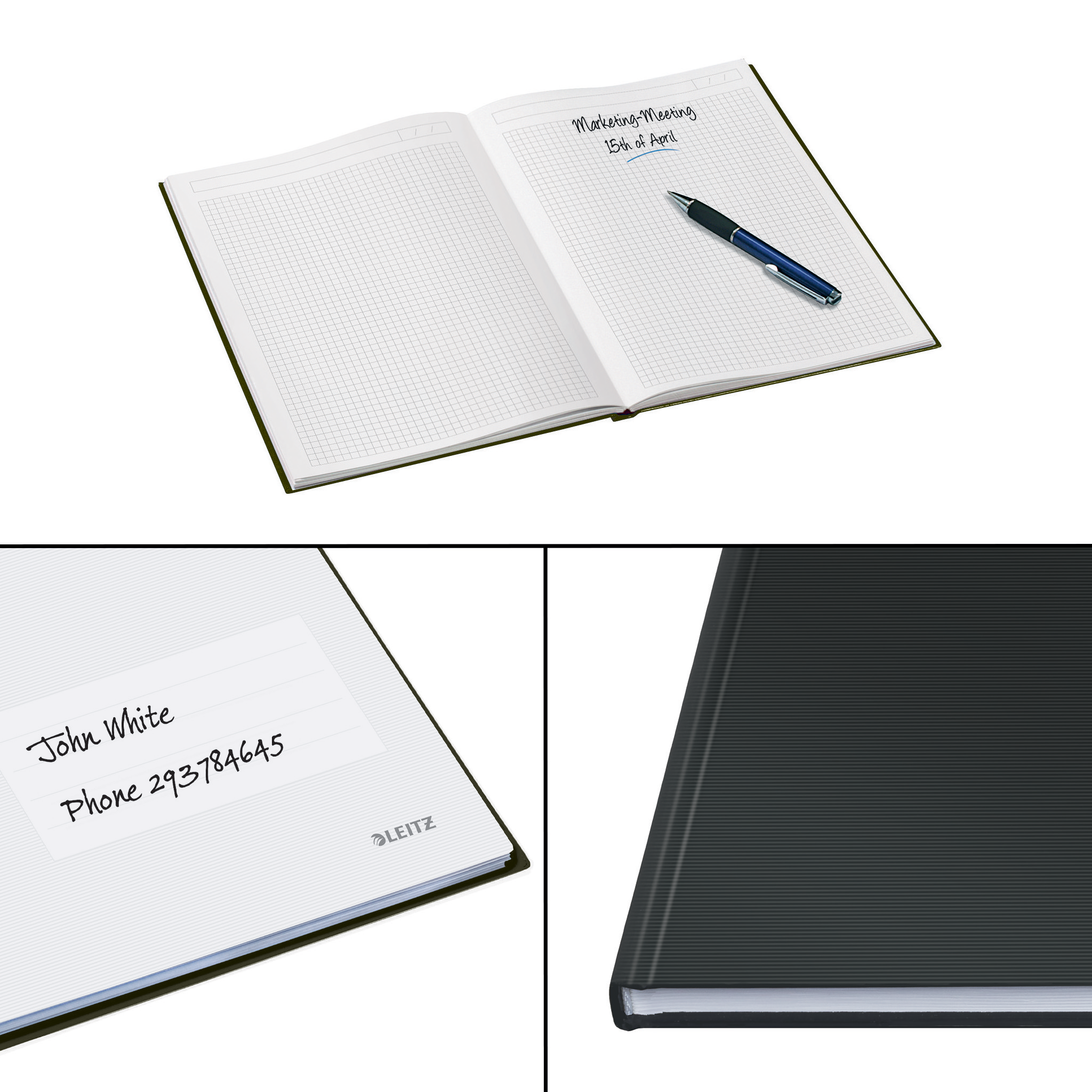 Solid indbundet notesbog til hverdagsbrug med lamineret hardcover-omslag i tidløst Solid-design. Den laminerede overflade giver et blankt udseende og en fornemmelse af høj kvalitet. Kompletterer perfekt andre produkter fra Leitz Solid-serien.