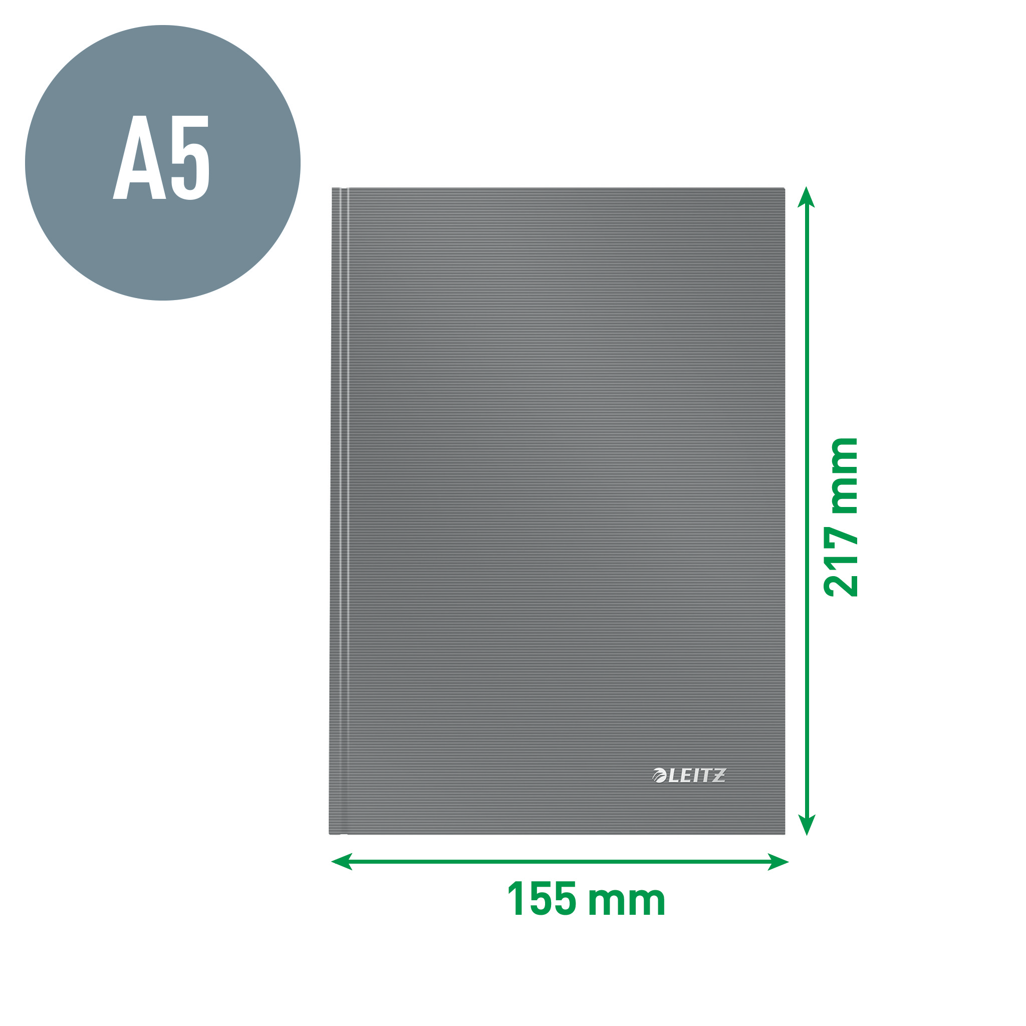 Solid indbundet notesbog til hverdagsbrug med lamineret hardcover-omslag i tidløst Solid-design. Den laminerede overflade giver et blankt udseende og en fornemmelse af høj kvalitet. Kompletterer perfekt andre produkter fra Leitz Solid-serien.