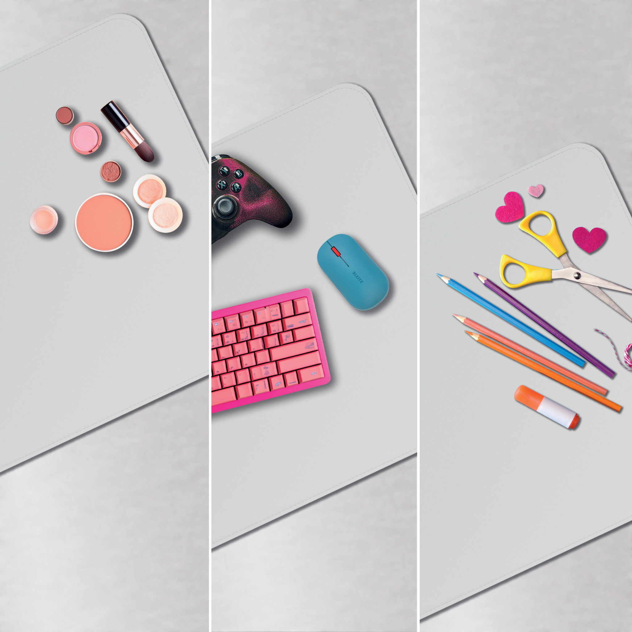 Forbliv produktiv og føl dig godt tilpas, uanset hvor din arbejdsdag bringer dig hen, med Leitz Large skriveunderlag. Det er en vandtæt skrivebordsbeskyttelsesmåtte, der er nem at rengøre, og som holder dit skrivebord pænt. Den store overflade på 80 x 40 giver plads til tastatur, mus, notesblok og tilbehør og beskytter dit skrivebord mod ridser, pletter, spild og skrammer. Kompatibel med al laser- og optisk musesporing. Kan rulles sammen med en strop, der holder den fast, så den er nem at transportere og dele på skrivebordet. Plastfri emballage. Indbydende mat farve med et minimalistisk design og afrundede hjørner. Multifunktionel brug som skriveunderlag og musemåtte, hvilket gør den velegnet til både arbejde og fritid. HAV DET GODT med Leitz.
