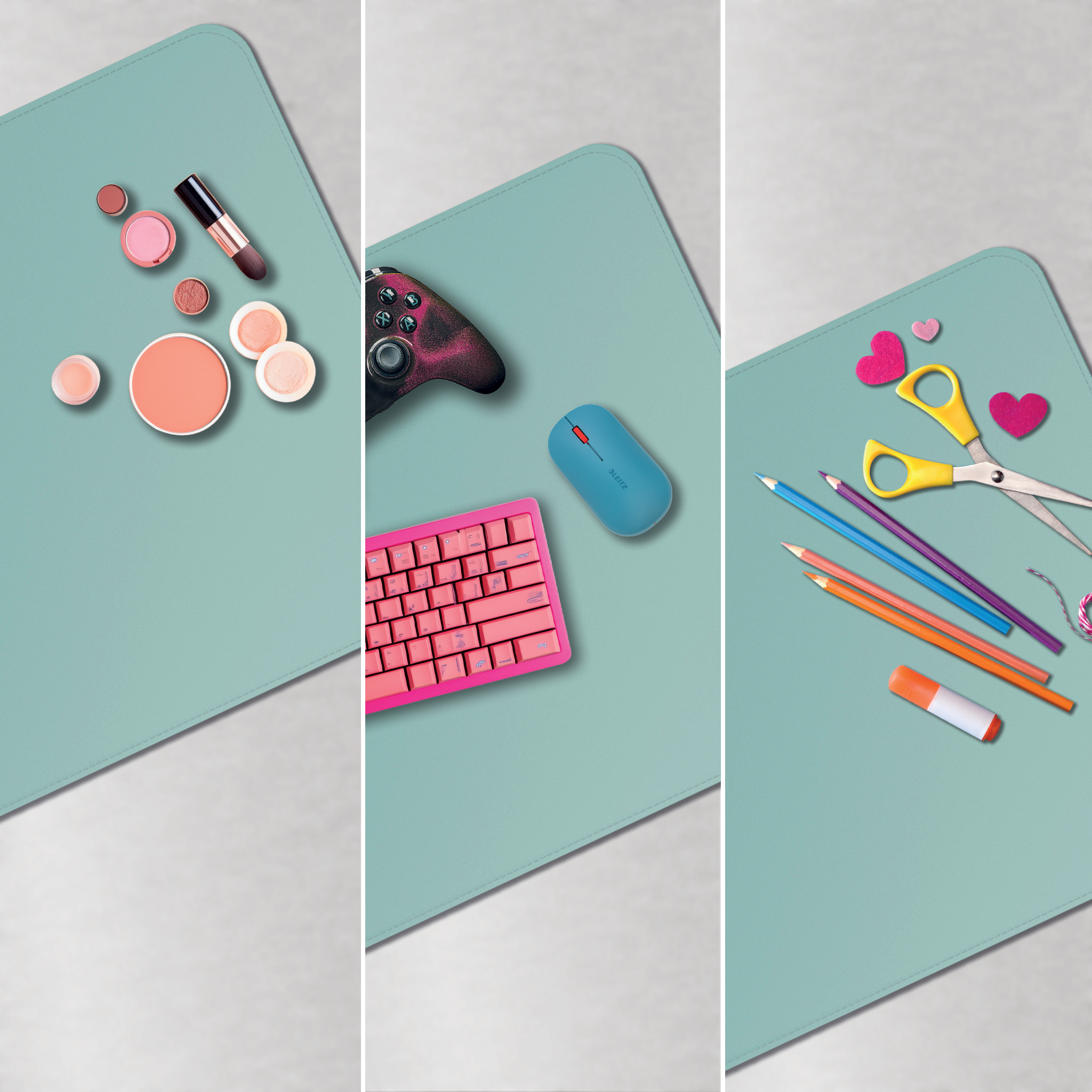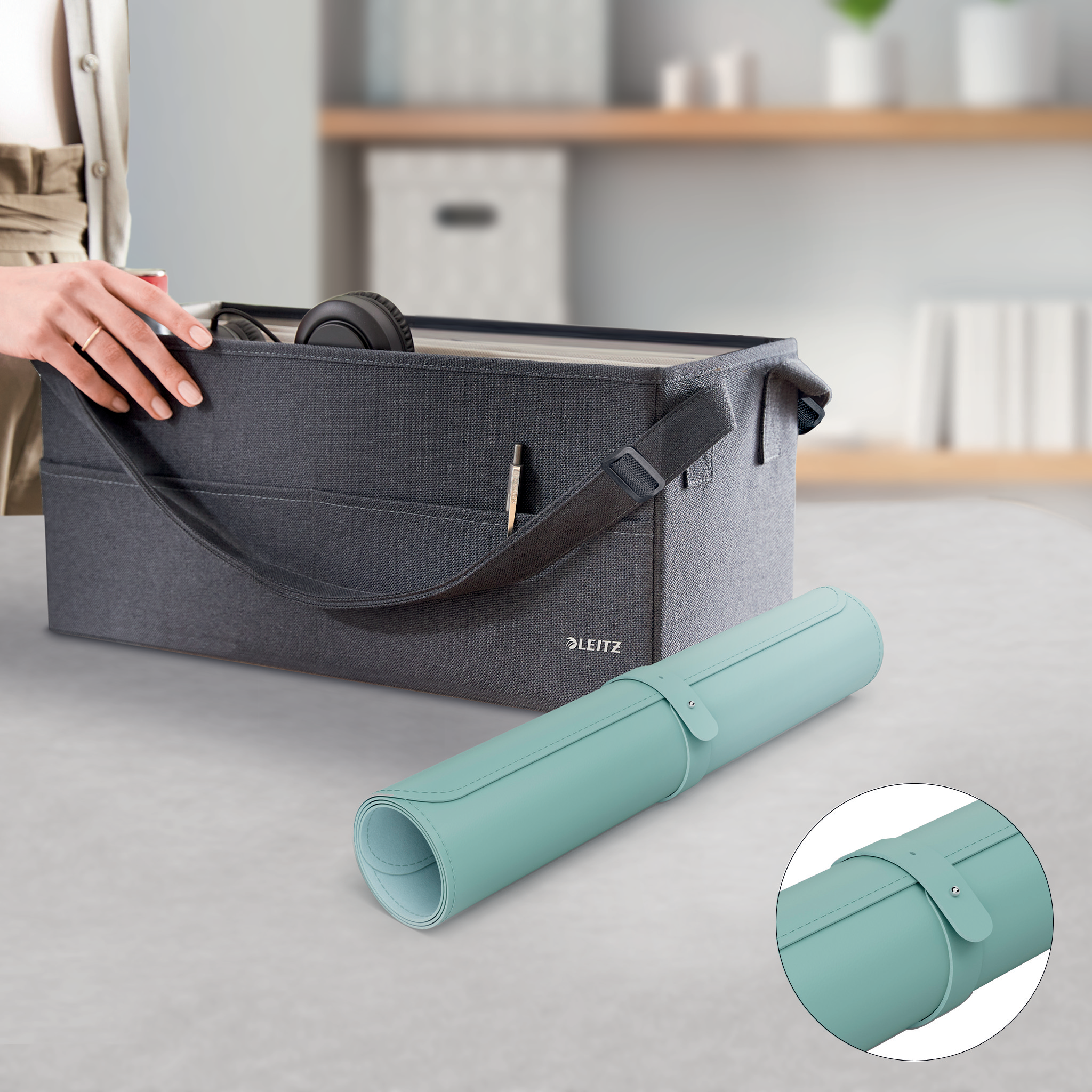 Forbliv produktiv og føl dig godt tilpas, uanset hvor din arbejdsdag bringer dig hen, med Leitz Large skriveunderlag. Det er en vandtæt skrivebordsbeskyttelsesmåtte, der er nem at rengøre, og som holder dit skrivebord pænt. Den store overflade på 80 x 40 giver plads til tastatur, mus, notesblok og tilbehør og beskytter dit skrivebord mod ridser, pletter, spild og skrammer. Kompatibel med al laser- og optisk musesporing. Kan rulles sammen med en strop, der holder den fast, så den er nem at transportere og dele på skrivebordet. Plastfri emballage. Indbydende mat farve med et minimalistisk design og afrundede hjørner. Multifunktionel brug som skriveunderlag og musemåtte, hvilket gør den velegnet til både arbejde og fritid. HAV DET GODT med Leitz.