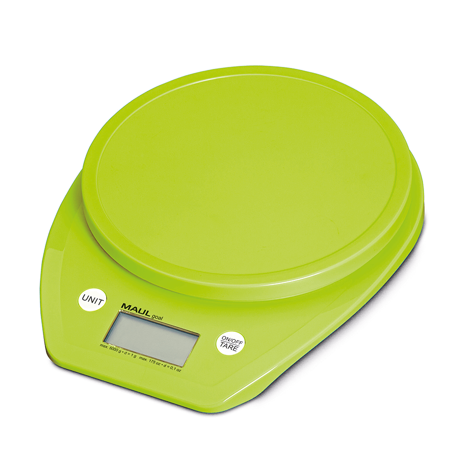 MAULgoal Digital brevvægt, grøn MAULgoal er en stilren og funktionel digital brevvægt med LCD-skærm – ideel til kontoret, hjemmet eller lette pakkeopgaver. Brevvægten har en kapacitet op til 5 kg og målenøjagtighed på 1 gram. Vægten kan nemt skifte mellem vægt- og volumenmålinger (g, lb:oz, ml og fl oz), hvilket gør den alsidig i både privat og professionel brug. Platformen måler 15 cm i diameter og rummer nemt breve, pakker eller beholdere. MAULgoal har automatisk nulstilling, TARE-funktion og automatisk slukning efter ca. 1,5 minutters inaktivitet. Kabinettet er fremstillet i slagfast plast, hvilket sikrer lang levetid og modstandsdygtighed i daglig brug. To AAA-batterier medfølger ved levering. Vægten er udviklet af MAUL, specialist i præcisionsmåling i over 80 år, og leveres med 2 års garanti. Produktmål: 20 x 16 x 3 cm Platform: Ø 15 cm Vægt inkl. emballage: 407 g Kapacitet: 5 kg Præcision: 1 g Minimumsbelastning: 2 g
