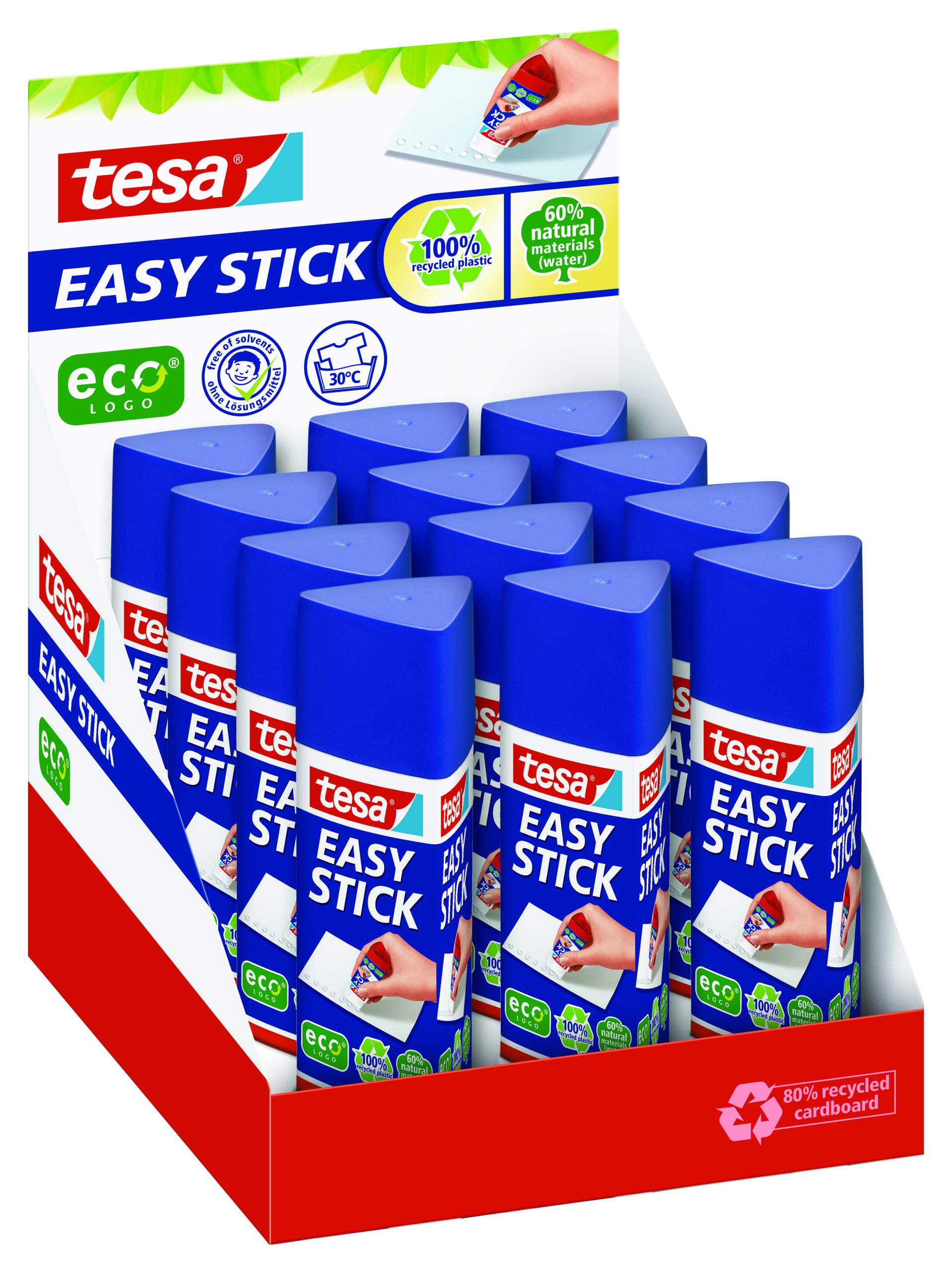 tesa limstift Easystick uden opløsningsmidler. Den trekantede form gør det nemt at komme helt ud i hjørnerne samt at lime bredt. Limen er velegnet til pap, papir, fotos, stof, filt, kork mm. Nem at påføre og lugter ikke. Rør og emballage er lavet af genbrugsmaterialer. 12 gram.