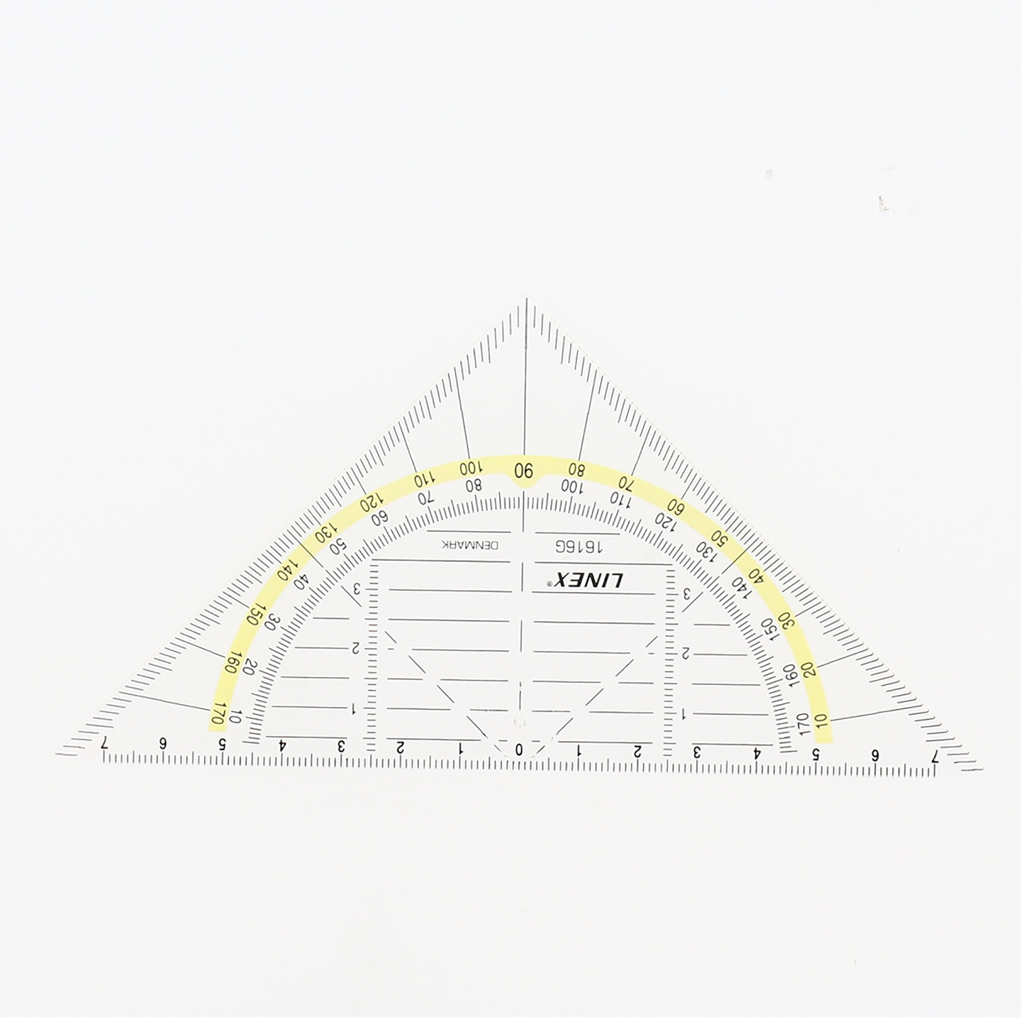 Med facet og tuschkant. Mm-skala og gul stribe.