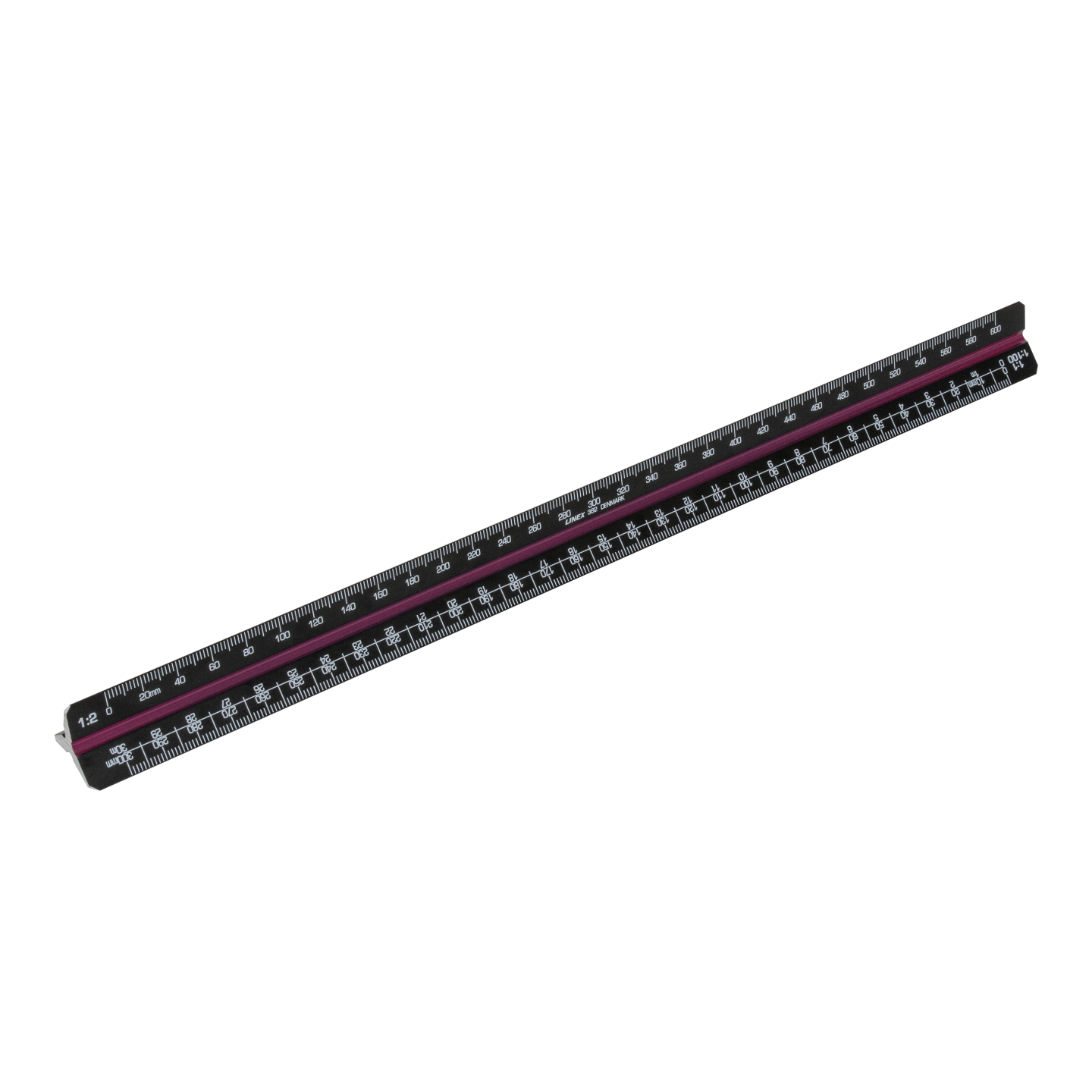 Med 11 forskellige skalaer. Metrisk inddeling. Noter i 3 farver. Inddeling: 1:1:2:5:20:50:100:200:500:1000:1250:2500.