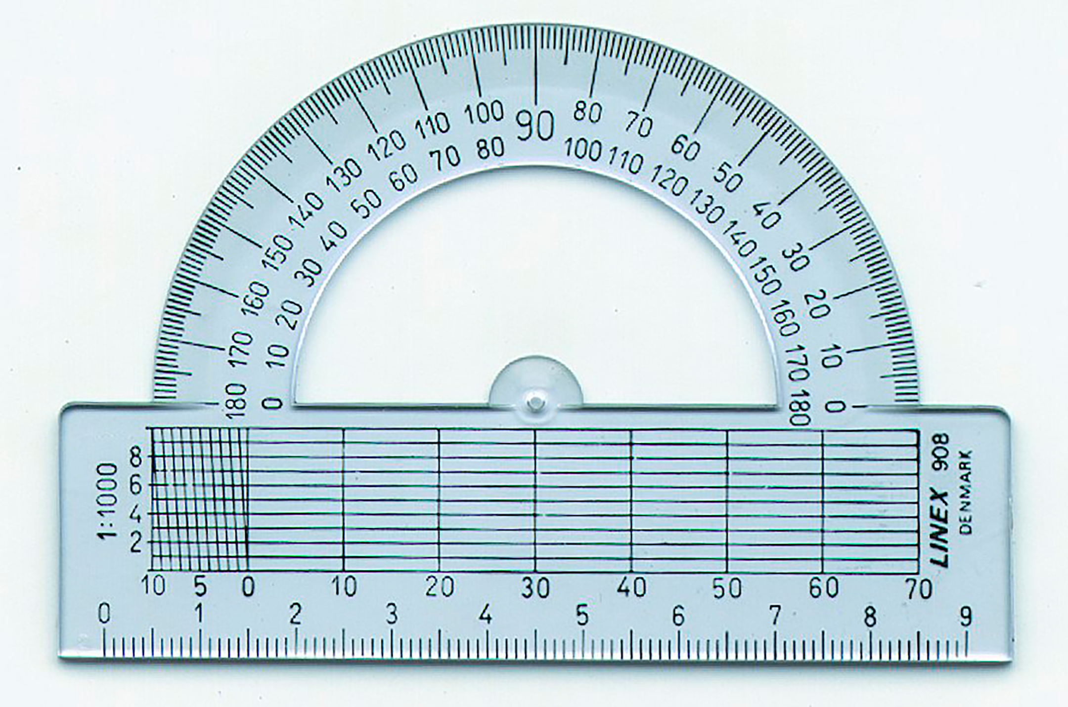 Buelængde 180 grader, gradinddeling 1/1 grader. Dia. : 80 mm.