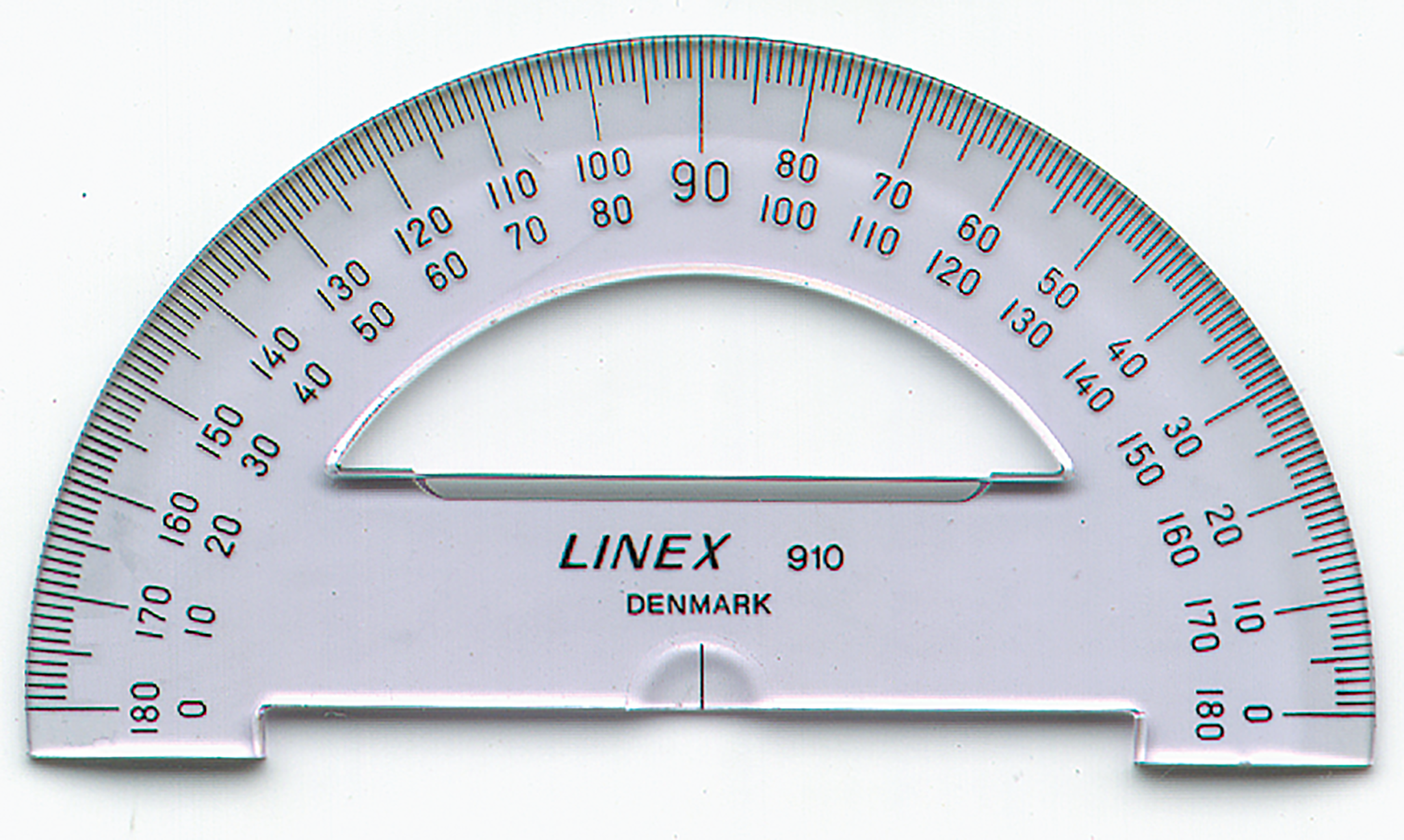 Buelængde 180 grader, gradinddeling 1/1 grader.