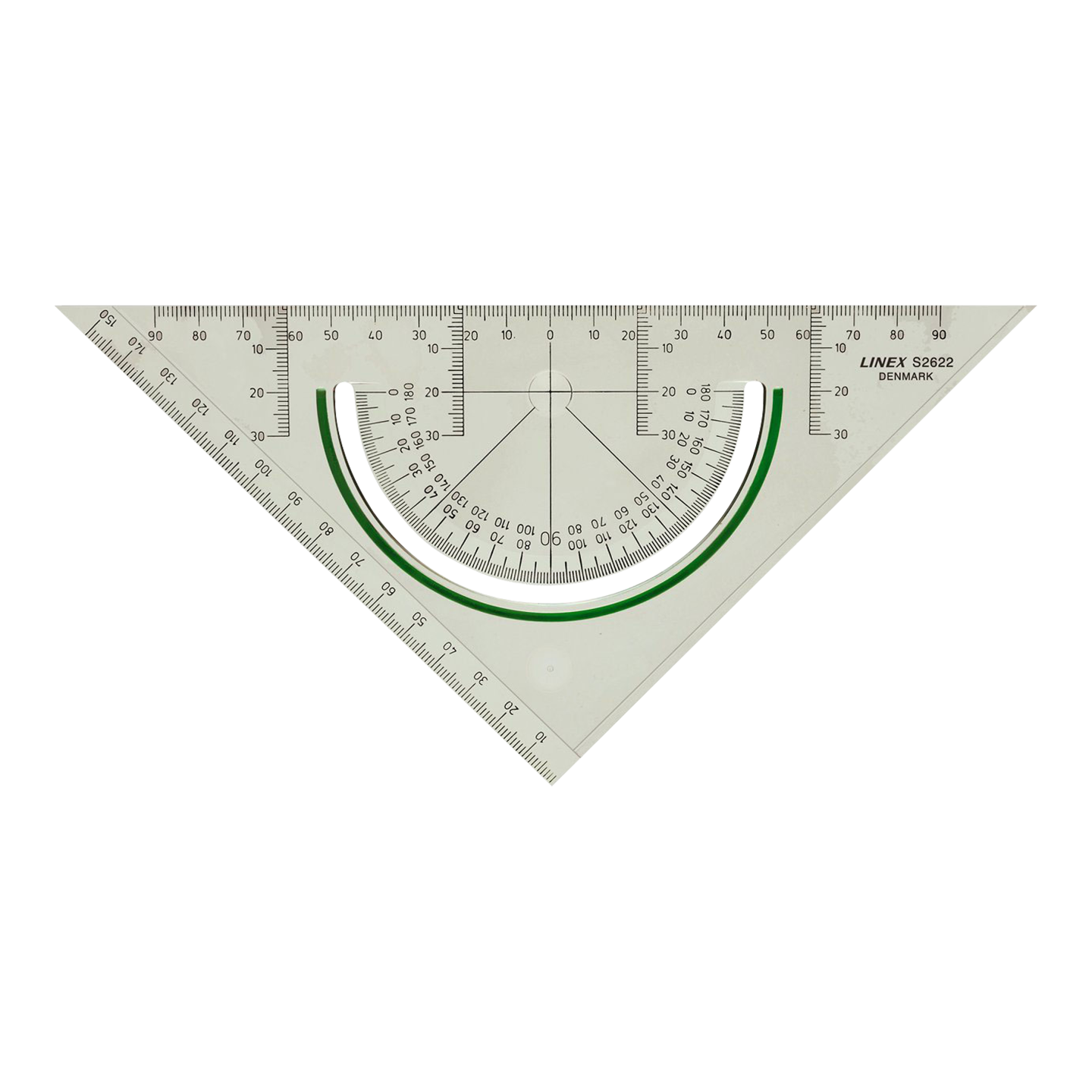 Med facet. Antislide. Indbygget protractor med forstørrelsesglas over punkt nul.