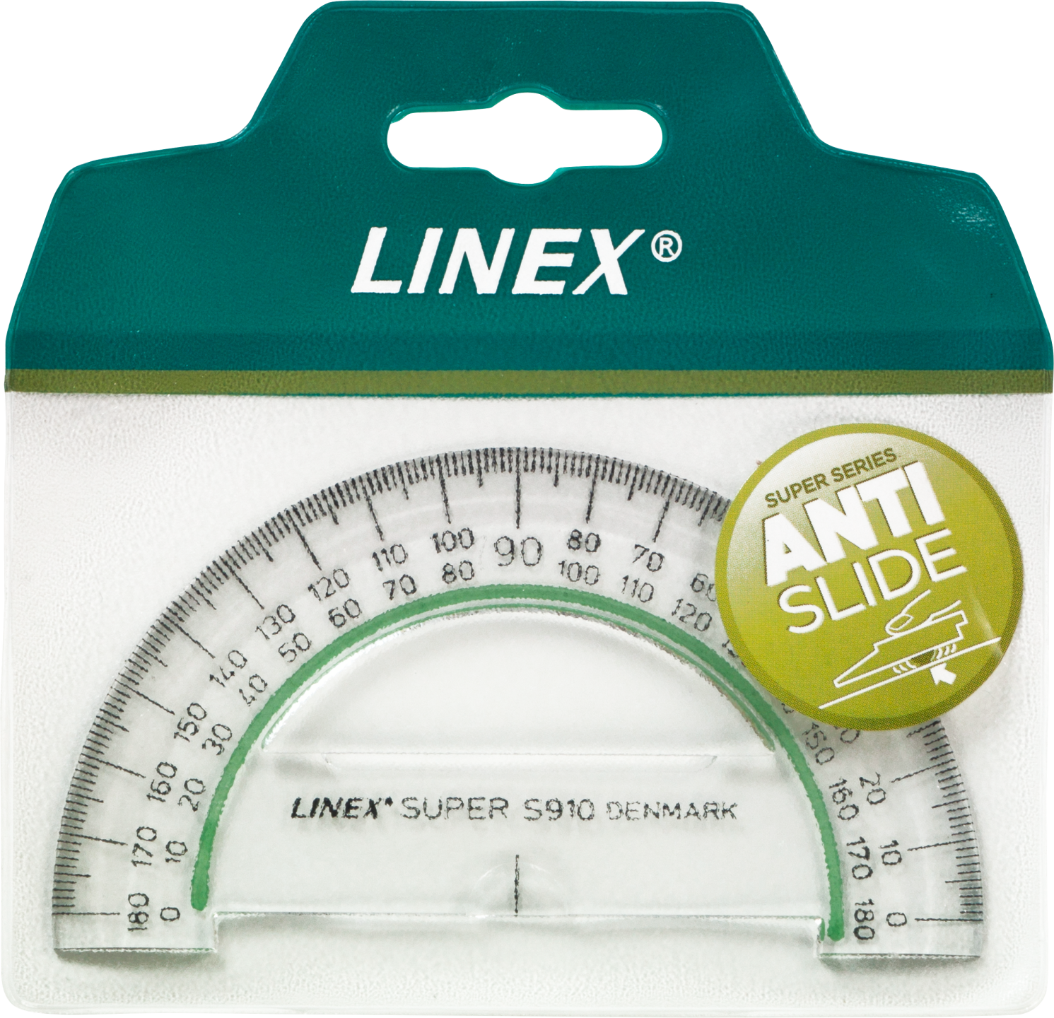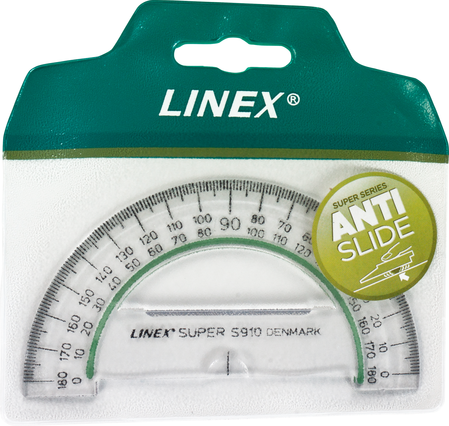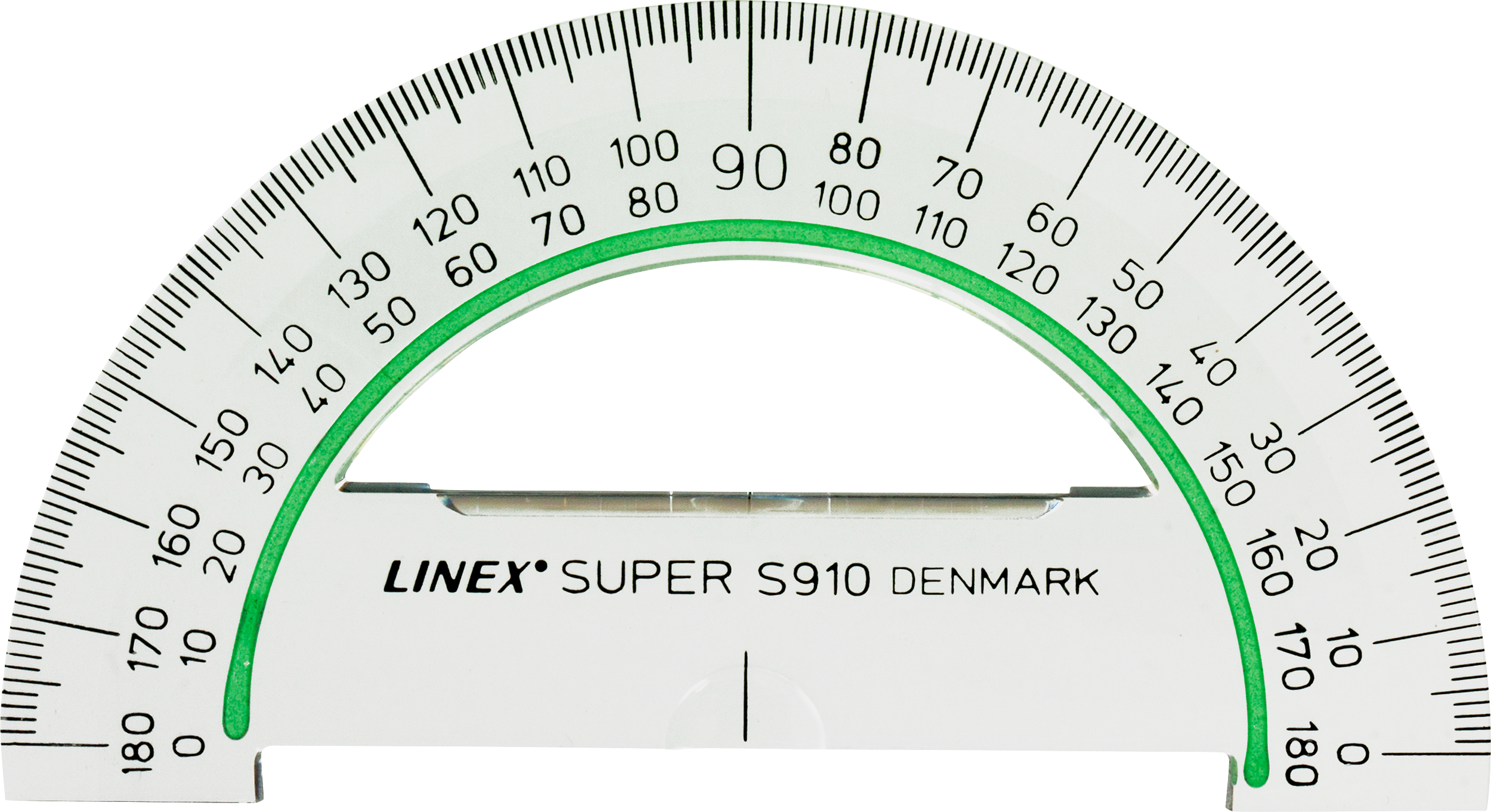 Buelængde 180 grader, gradinddeling 1/1 grader. Antislide.