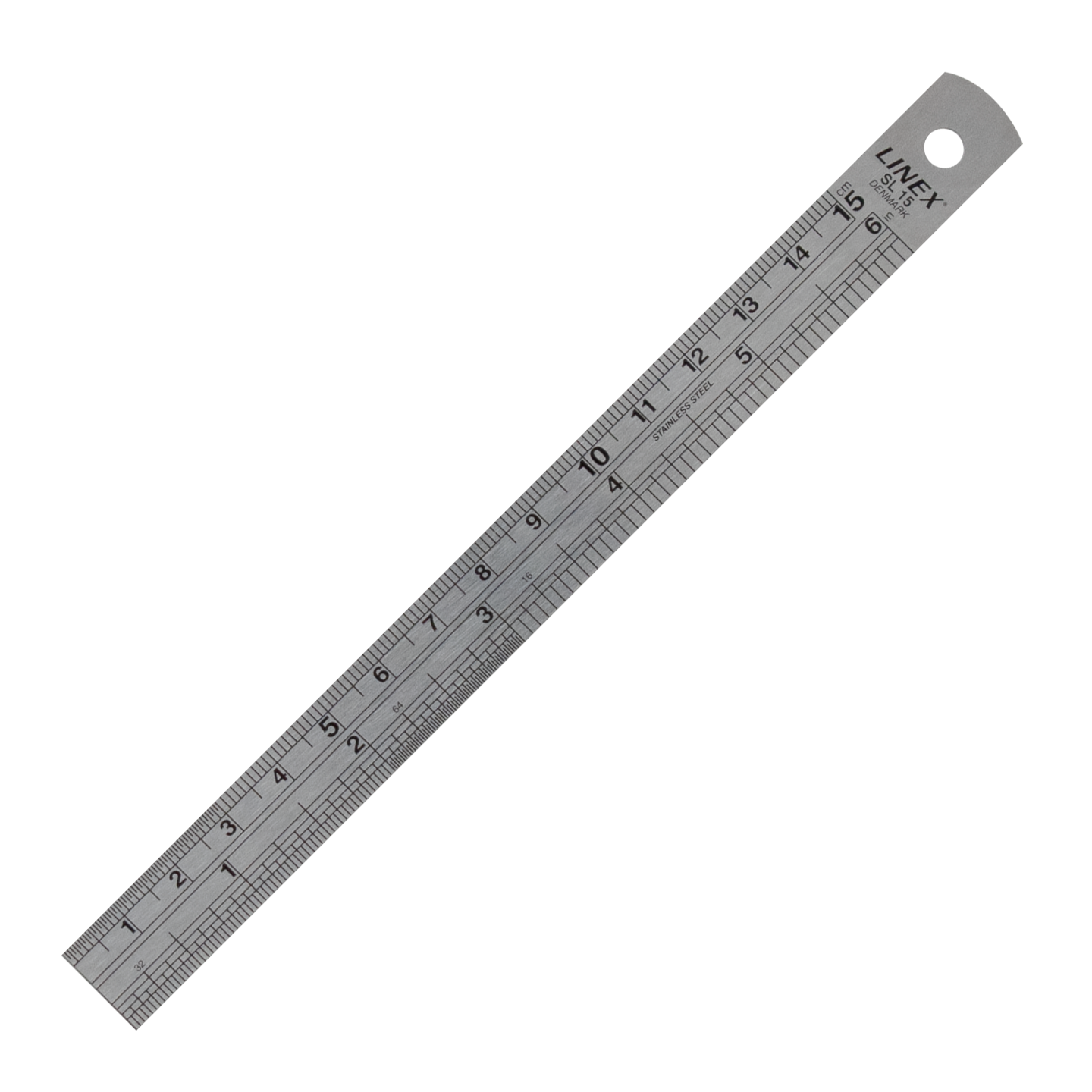 Mål i cm og tommer. Med mange inddelinger på begge skalaer samt omregningstabeller på bagside.