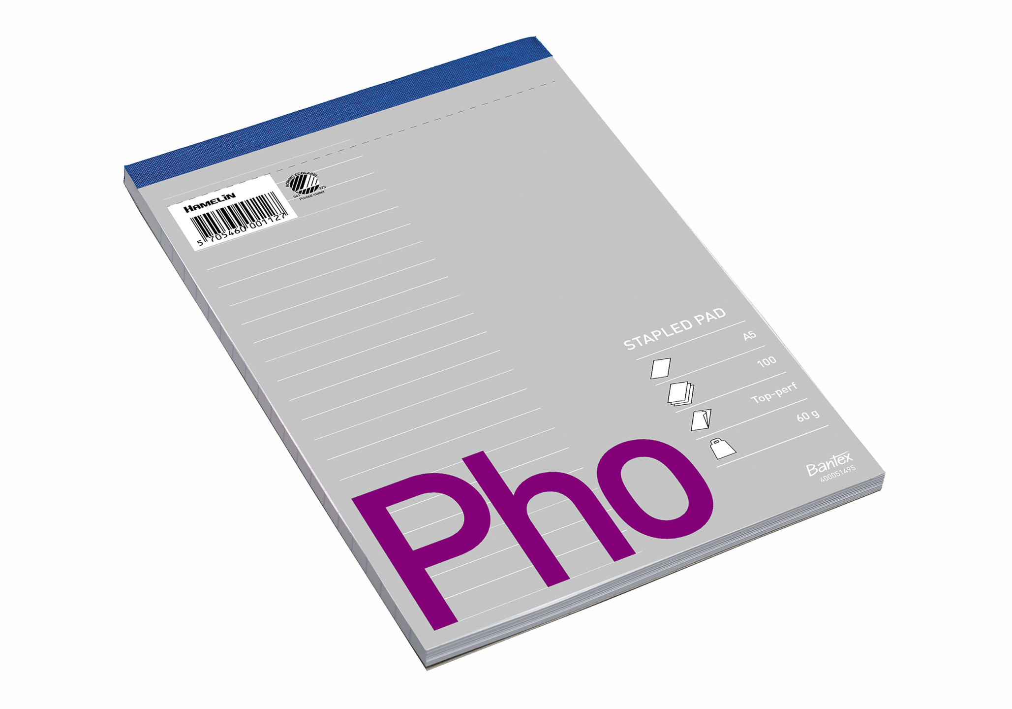 Hvid 60g papir, linjeret 9mm. Certificeret med den nordiske svan og EU-ecolabel, der garanterer den reducerede miljøpåvirkning af papirprodukter i hele deres livscyklus, fra råmaterialer til levetid. 100. Uhullet. Mikroperforering.