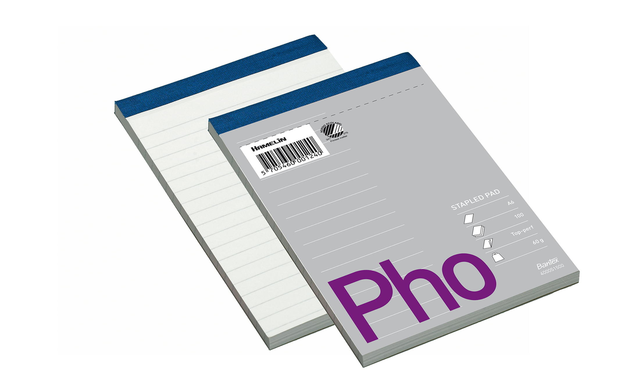 Hvid 60g papir, linjeret 7mm. Certificeret med den nordiske svan og EU-ecolabel, der garanterer den reducerede miljøpåvirkning af papirprodukter i hele deres livscyklus, fra råmaterialer til levetid. 100. Uhullet. Mikroperforering.