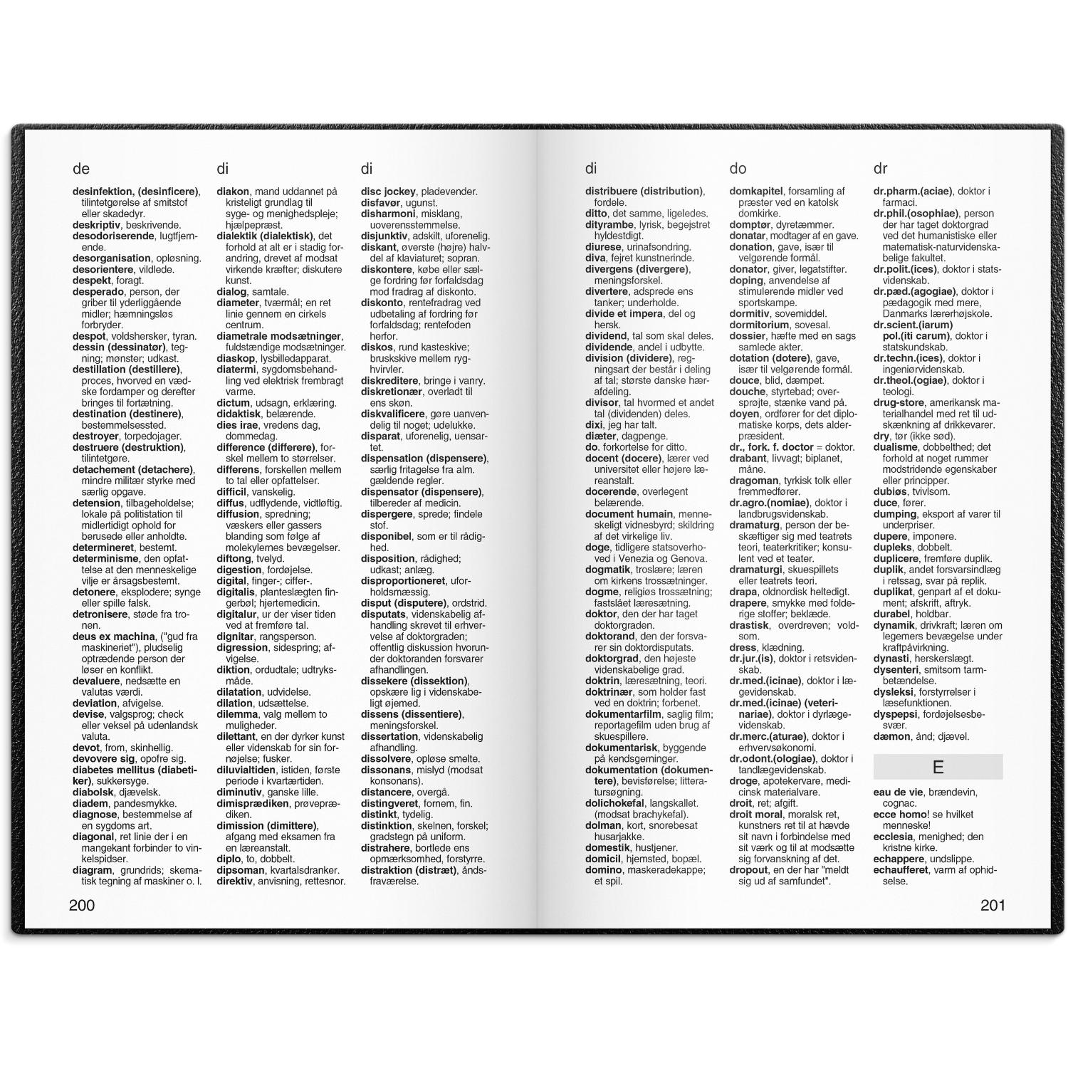 Mål: 112 x 76 x 18 mm. Layout: Uge/opslag. Tværformat. Kalendarium: 2026-01-01 – 2026-12-31. Omslag: Kunstlæder. Indbundet. Indhold: Ordbog. Sideantal: 328. Miljøoplysninger: FSC® papir. Varemærke: Mayland.