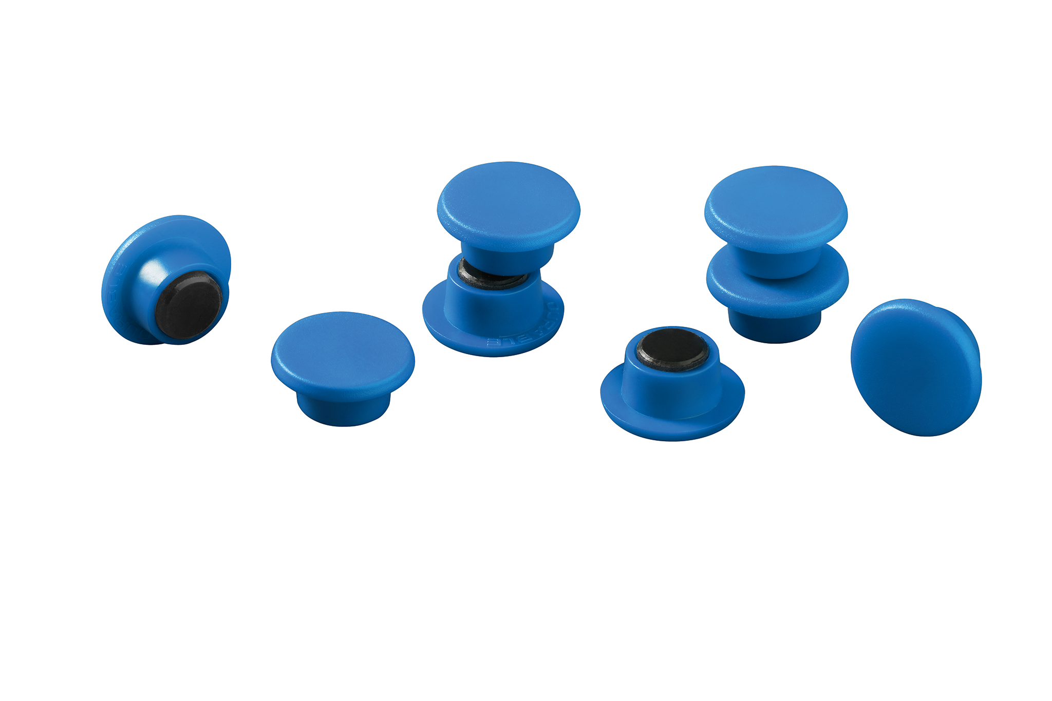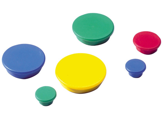 Runde magneter med hætte af ridsefri plast. Greb kant muliggør enkel beplantning og fjernelse af magneterne. Størrelse Ø 15mm. Bæreevne 75 gram. 20stk/æske