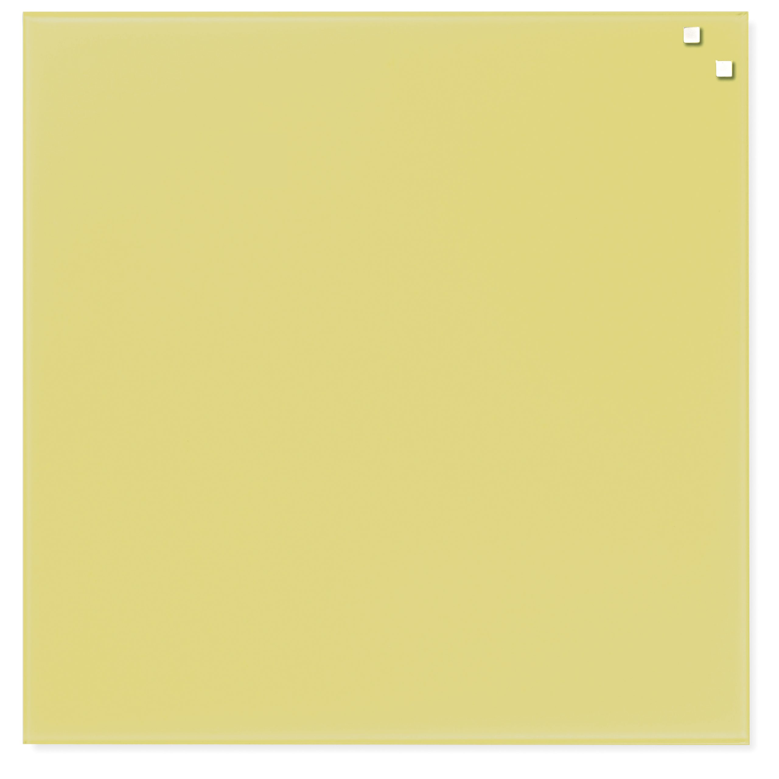 45 x 45 cm. Gul Magnetisk GlastavleEn magnetisk glastavle kan bruges som opslagstavle ved brug af stærke magneter. Glasset giver et elegant udtryk og er samtidig en praktisk vægdekoration. Denne gule glastavle måler 45 x 45 cm.Bemærk! Kun super stærke magneter kan bruges på glastavlen. Magneter medfølger ikke. Alle NAGA glastavler kræver kraftige neodym magneter, da magneten skal nå igennem glasset til metallaget på bagsiden af tavlen.Skriv på glasset med en kridt marker, eller med en almindelig whiteboard marker. Når teksten er tør, kan den nemt viskes ud igen med en tavlesvamp eller en tør klud. Til grundig rengøring skal du bruge tavlerens eller almindeligt glaspudsemiddel og en blød klud. Det er vigtigt, at du bruger en blød klud for at undgå at ridse glasset. Tavletilbehør kan tilkøbes separat.Ophæng: Der medfølger skruer og rawlplugs samt en boreskabelon. Tavlen har huller i hvert hjørne på bagsiden, så den nemt kan monteres på væggen. Se monteringsvejledning under vejledninger.