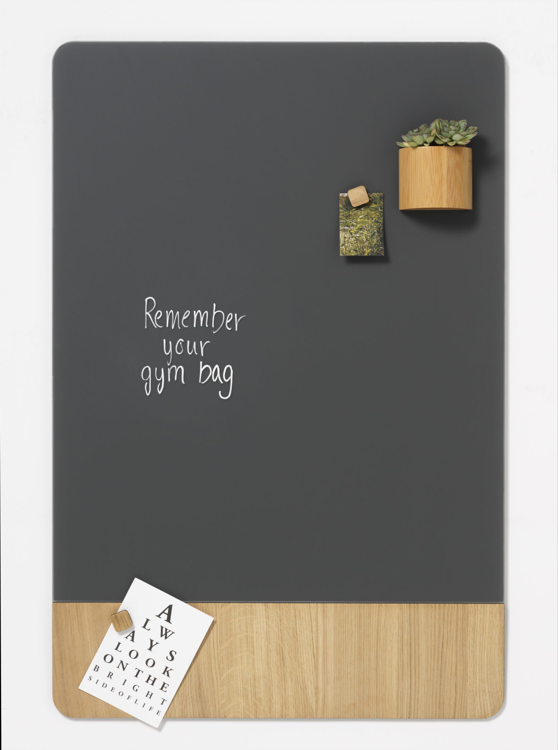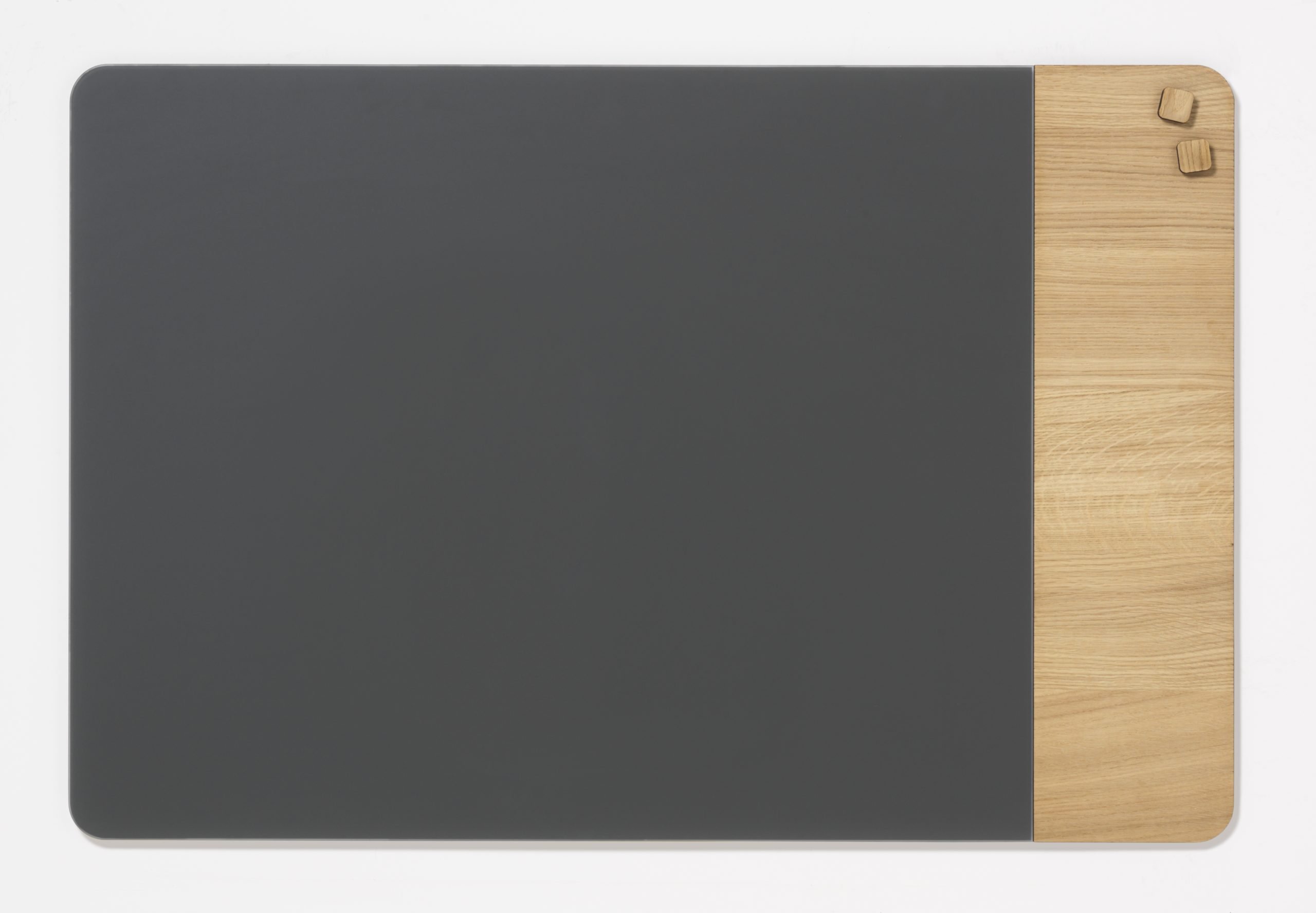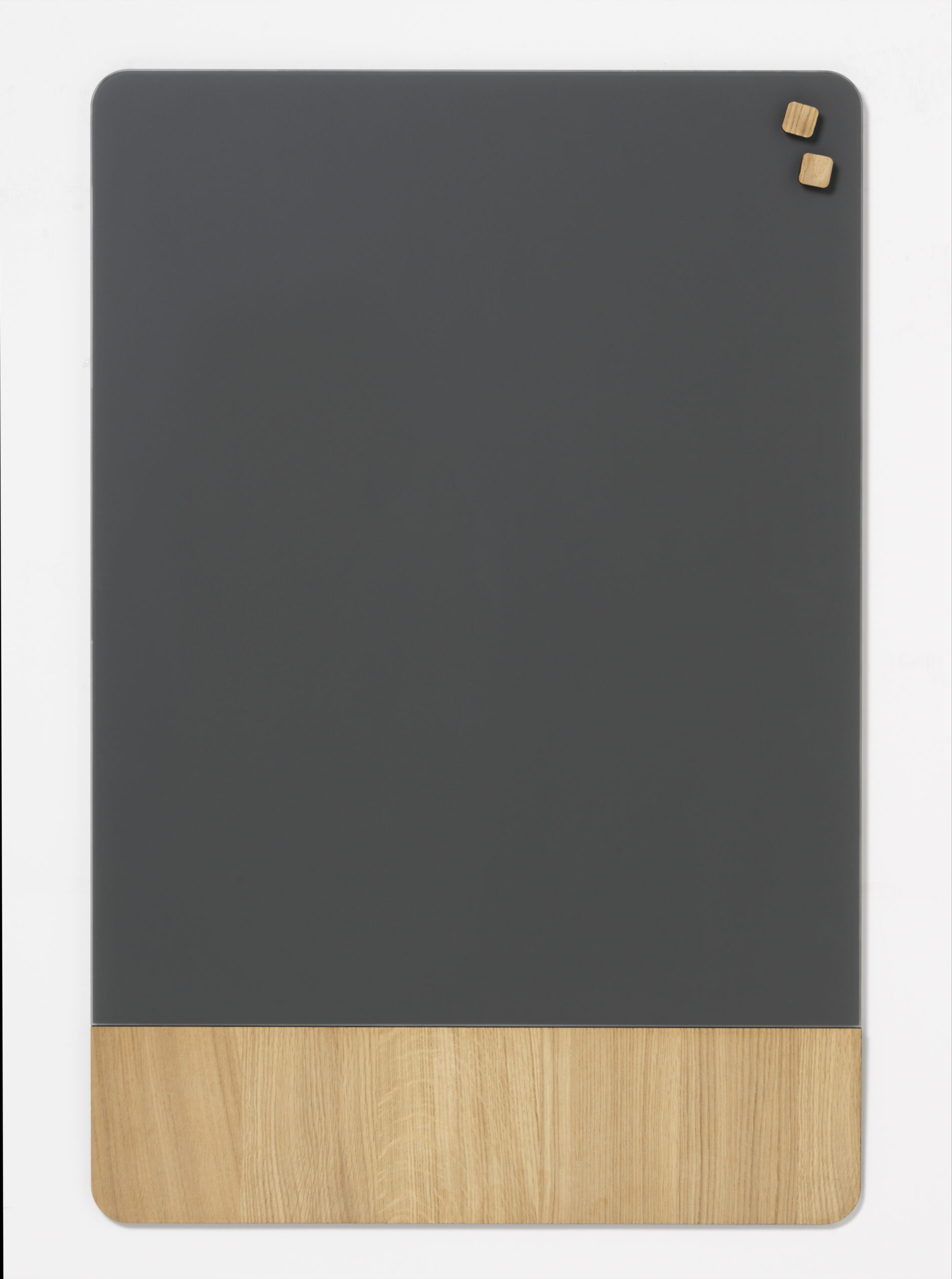 60 x 80 cm. Frosted glass gray / Oak veneer Magnetic board