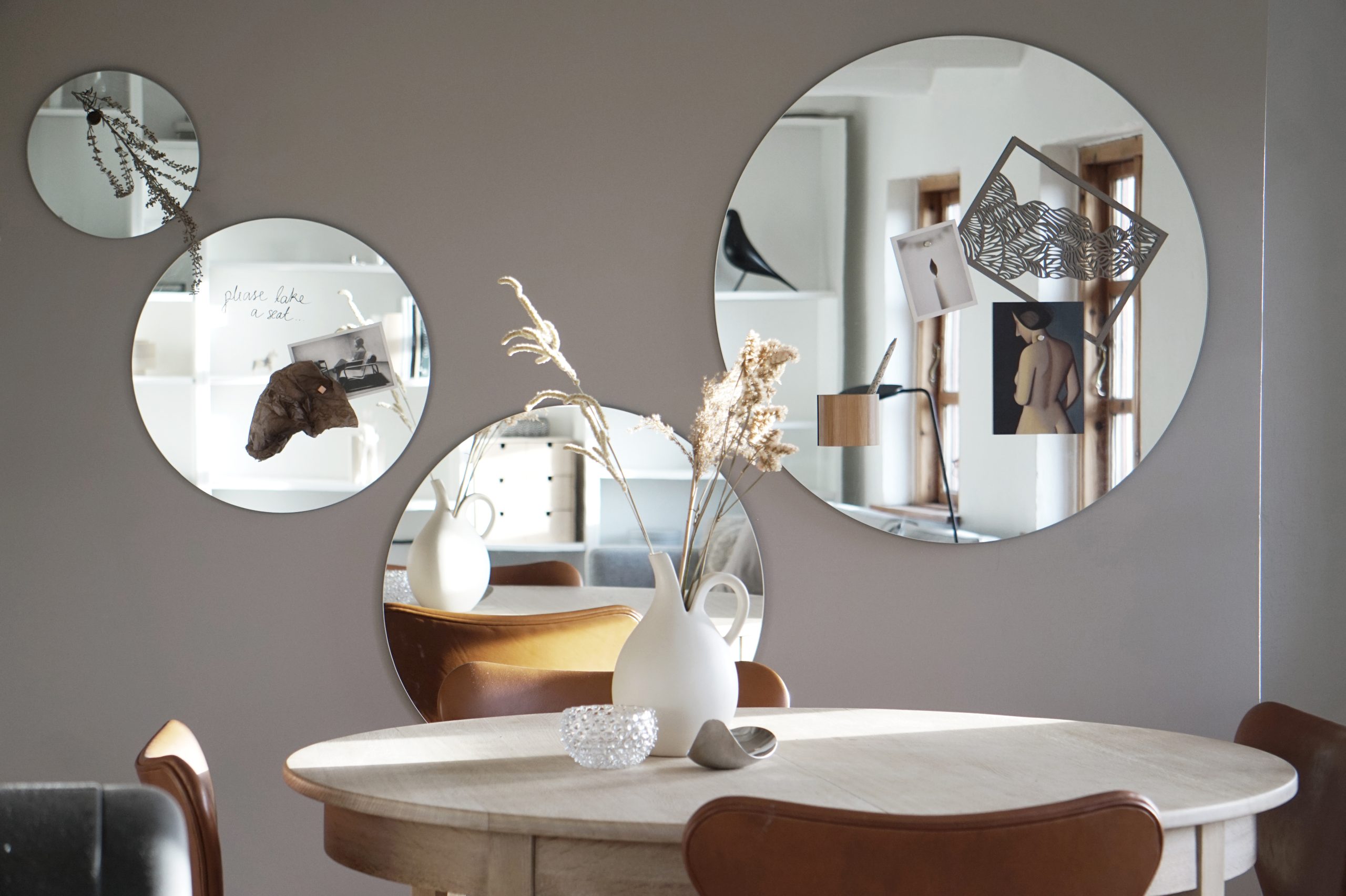 NAGA nord Magnetisk Cirkel tavle dia 80 cm. Spejl.Sæt ting på tavlen / spejlet med Super Stærke magneter.Man kan også skrive på spejlet med en kridt marker, eller med en almindelig whiteboard marker. Når teksten er tør, kan den nemt viskes ud igen, brug en tavlesvamp eller en tør klud.Til grundig rengøring skal du bruge tavlerens eller almindeligt glaspudsemiddel og en blød klud. Det er vigtigt, at du bruger en blød klud for at undgå at ridse spejlet.
