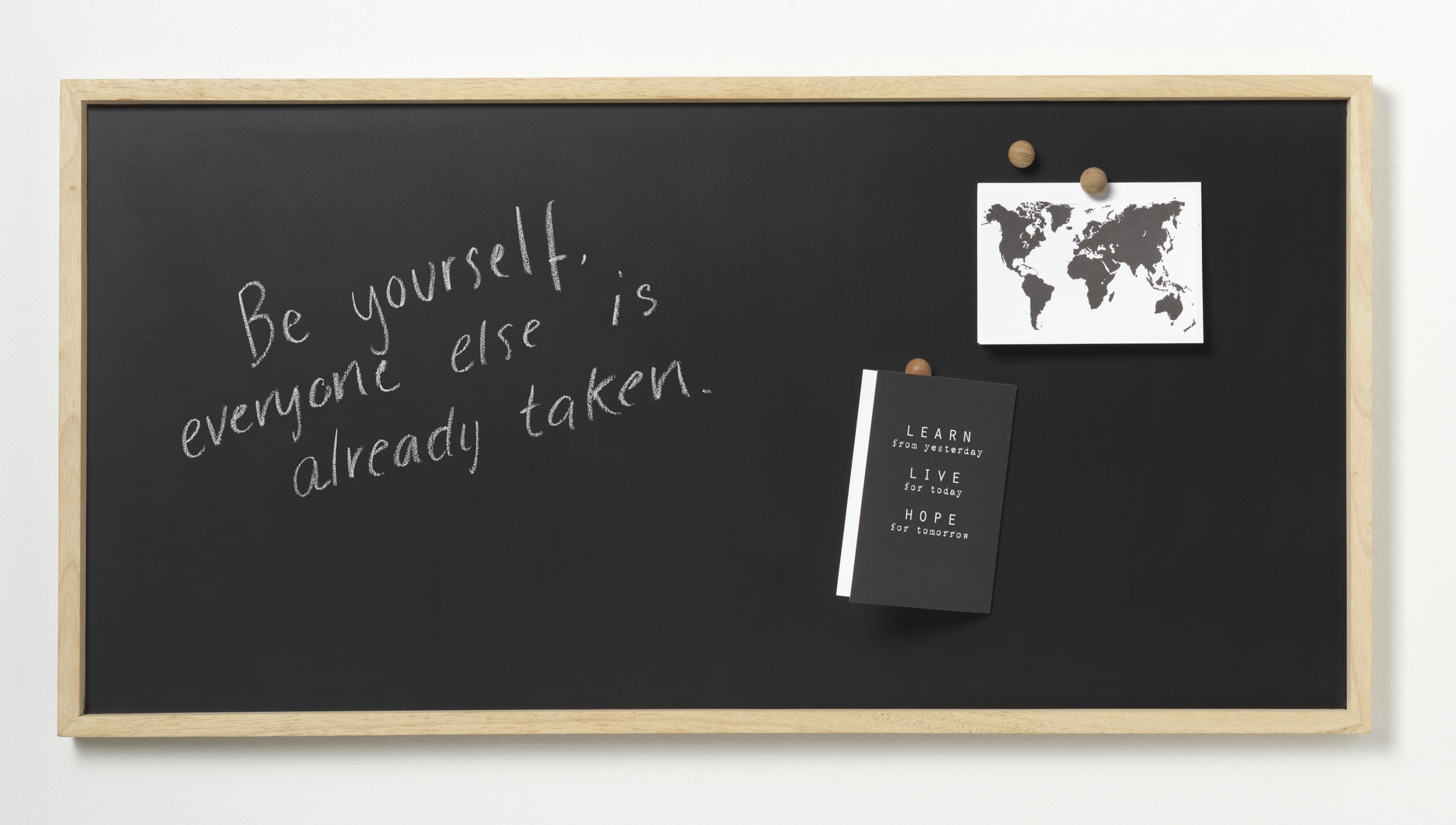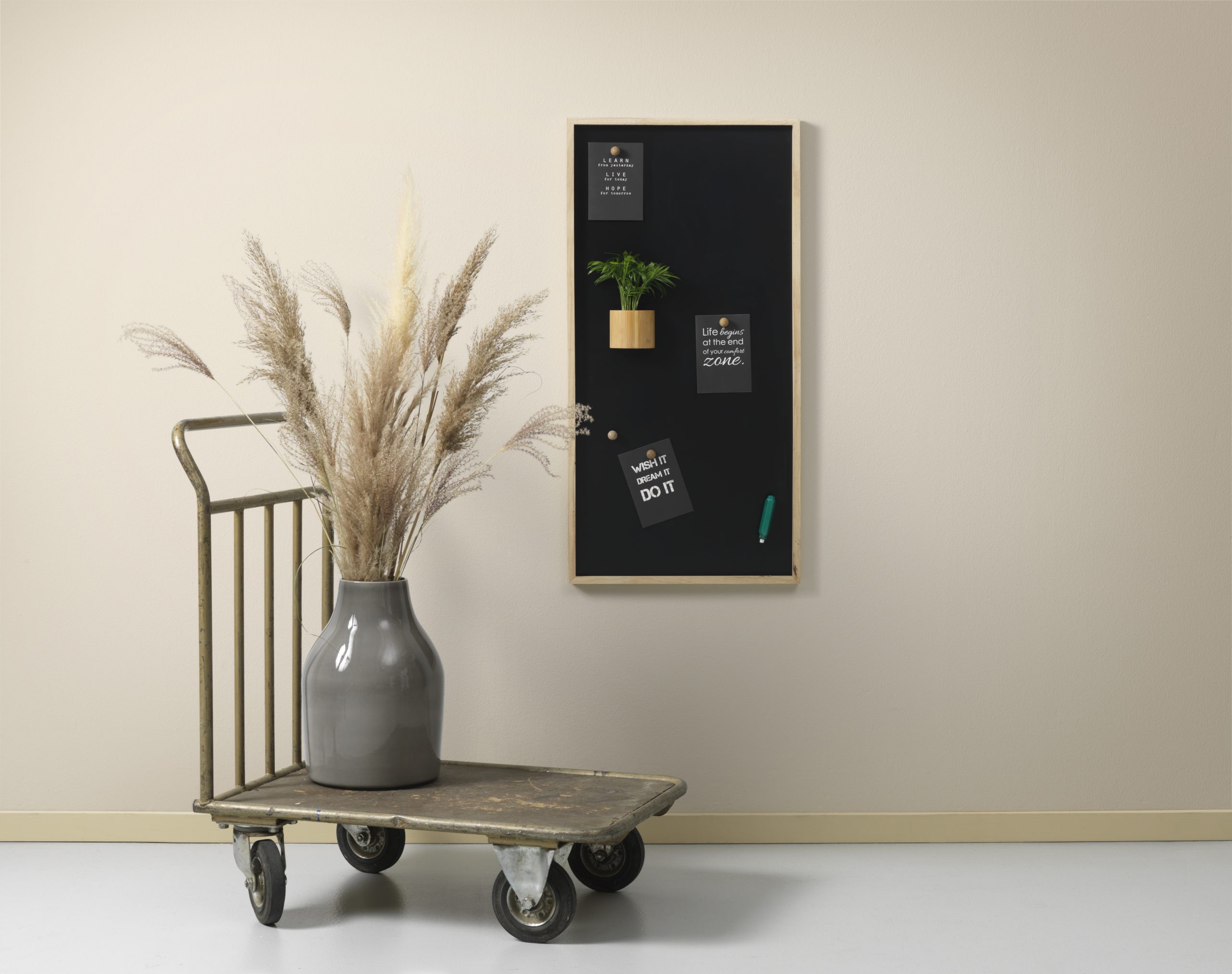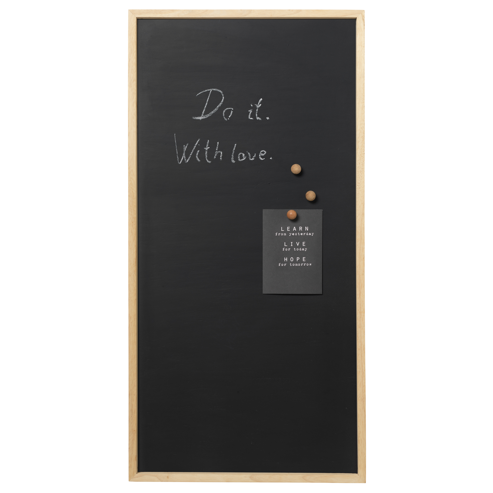 Kridttavle til vægSmart kridttavle til væg med 2,5 cm ramme i gummitræ. Tavlen har et stilrent design, så den kan hænge i alle rum. Grundet tavlens magnetiske effekt kan den med fordel bruges som opslagstavle, da du foruden at skrive på den med kridt, også kan hænge ting op. Rengør nemt tavlen med en klud. Kridttavlen er designet så du både kan hænge den vandret og lodret på væggen. Det giver dig flere muligheder, så du kan finde den helt rette plads i hjemmet.Vi anbefaler ikke at man skriver med en kridtmarker på en kridttavle, da teksten kan være vanskelig at fjerne igen. Brug i stedet almindeligt tavlekridt.Kridttavlen måler 50 x 100 cm og leveres med: 1 stk. tavlekridt i en grøn, magnetisk holder 1 stk. egetræ magnet