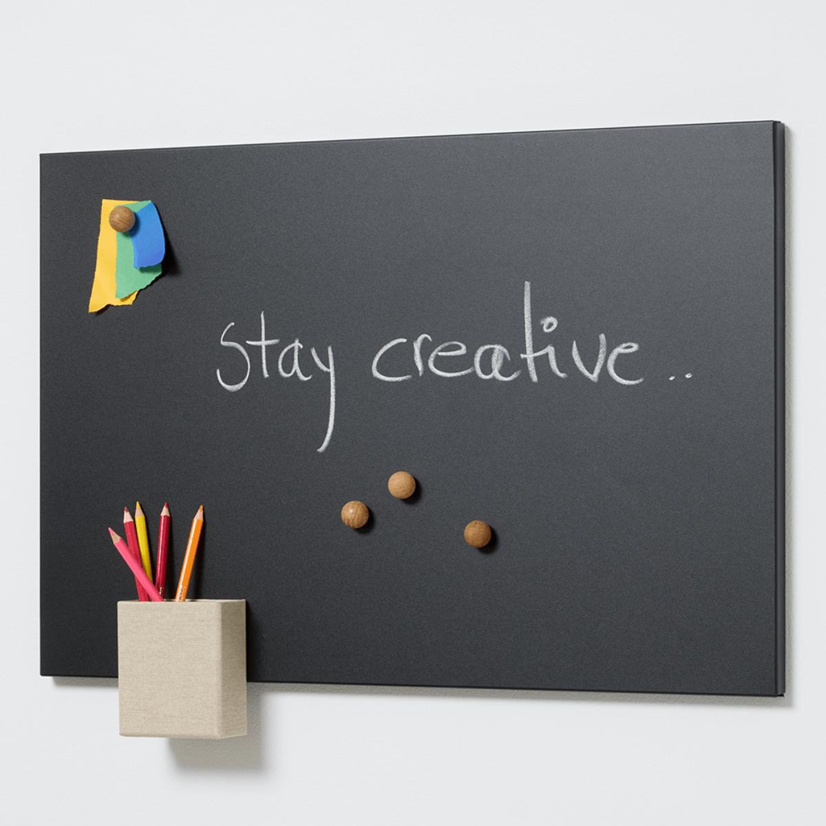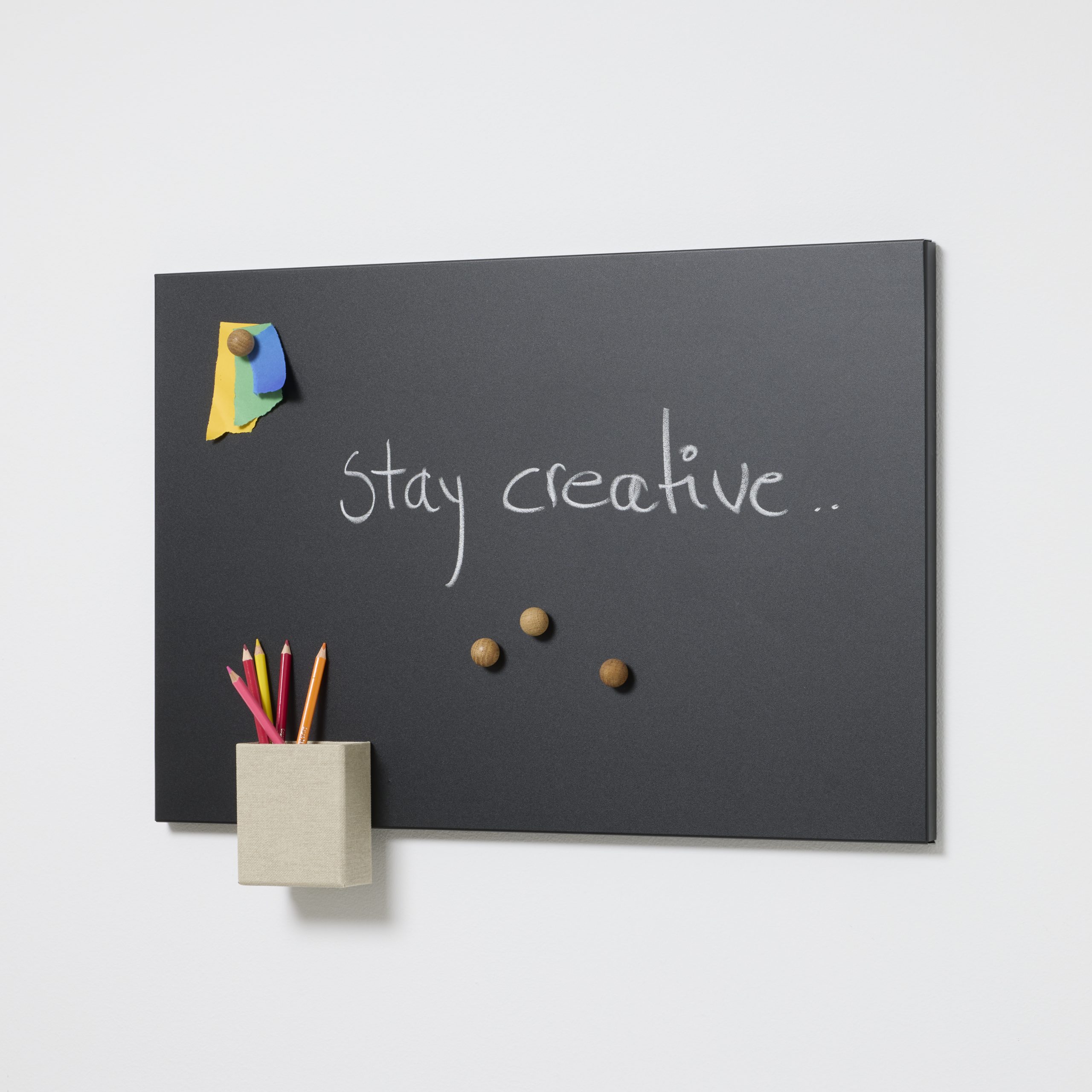 Magnetisk stål kridttavle 60 x 40 cm.Ståltavle beklædt med kridt folie. Anvendelig kridttavle der er velegnet mange steder i hjemmet, f.eks. i køkken, børneværelse, kontor eller krearum. Tavlen kan hænges lodret eller vandret, efter ønske. Det anvendte stålmateriale gør tavlen meget let, men stabil på samme tid. Skriv på tavlen med kridt, visk ud igen med en fugtig, blød klud. Sæt ting på den med magneter. Der kan anvendes almindelige magneter på denne tavle, f.eks. køleskabsmagneter eller whiteboardmagneter. Vi anbefaler ikke at man skriver med en kridtmarker på en kridttavle, da teksten kan være vanskelig at fjerne igen. Brug i stedet almindeligt tavlekridt. Kridt medfølger ikke men kan købes separat.Ophæng: Tavlen har huller til ophæng på bagsiden, og hænges op på væggen med 2 skruer. Skruer medfølger ikke.