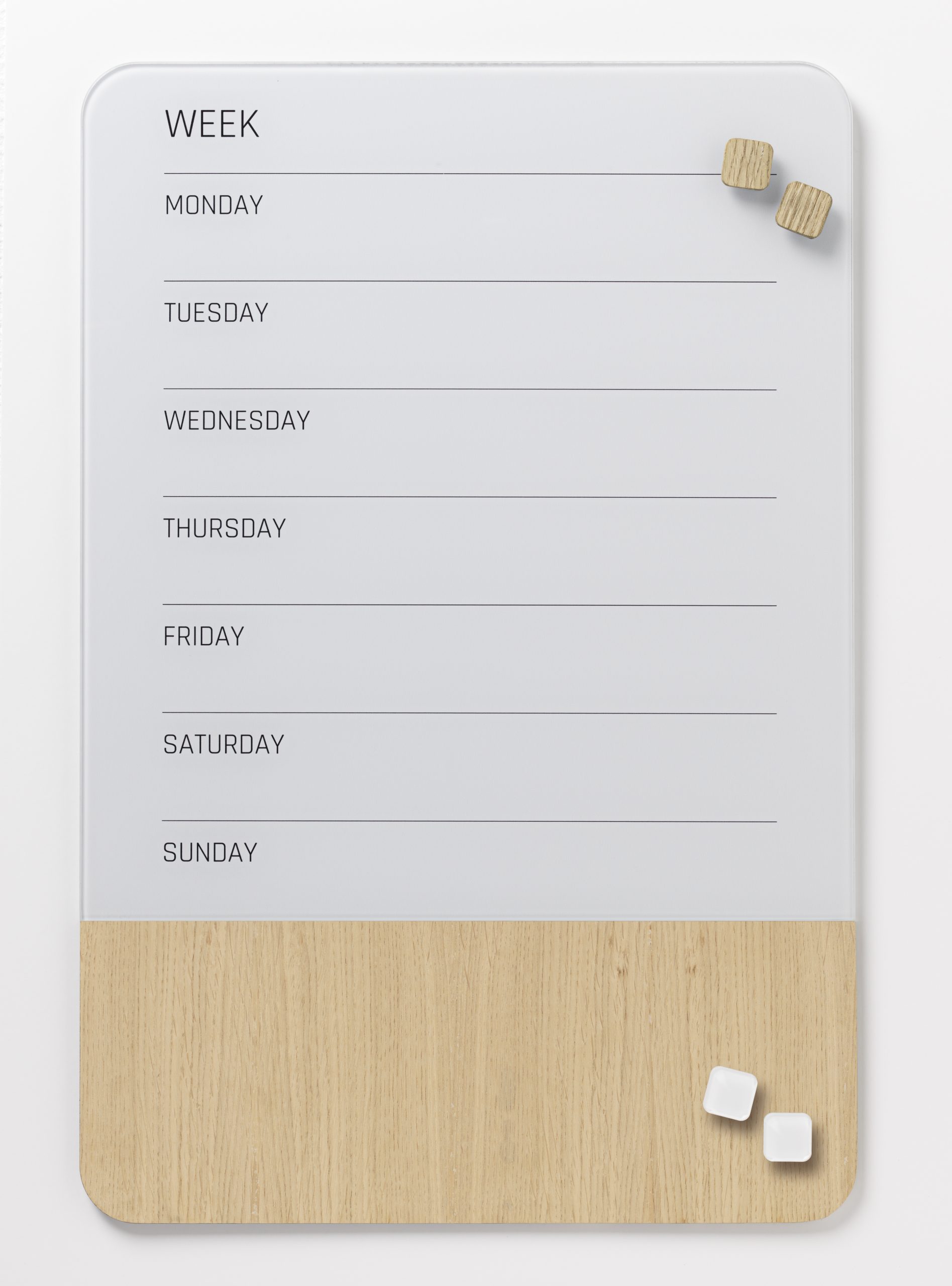 40 x 60 cm. Glass/Oak veneer Magnetik week planner English