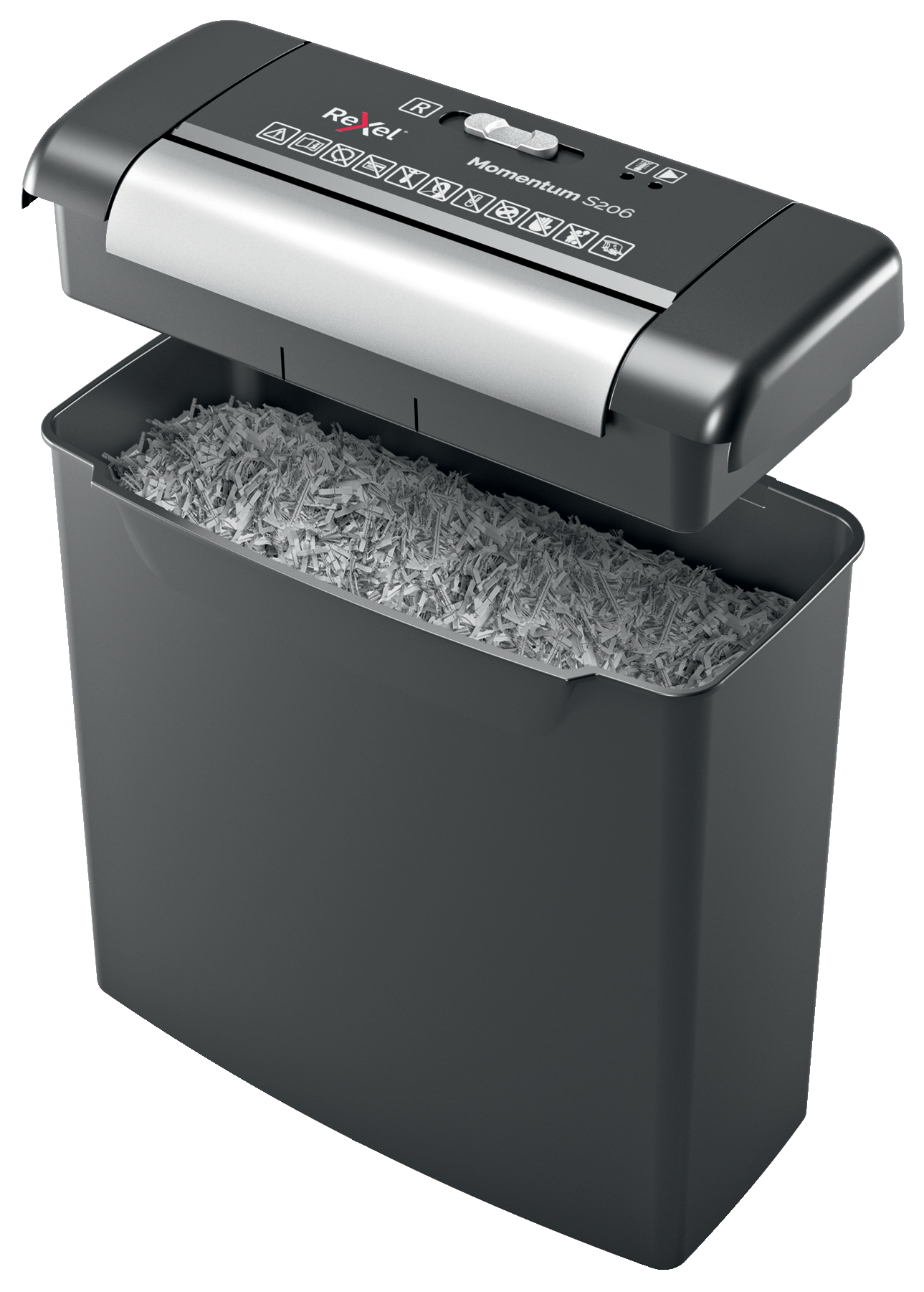 Kraften til at makulere mere! Rexel Momentum S206 makuleringsmaskine – P2, strimmelmakulering 6 mm stykker, 9 liter beholder kapacitet 75 x A4 ark