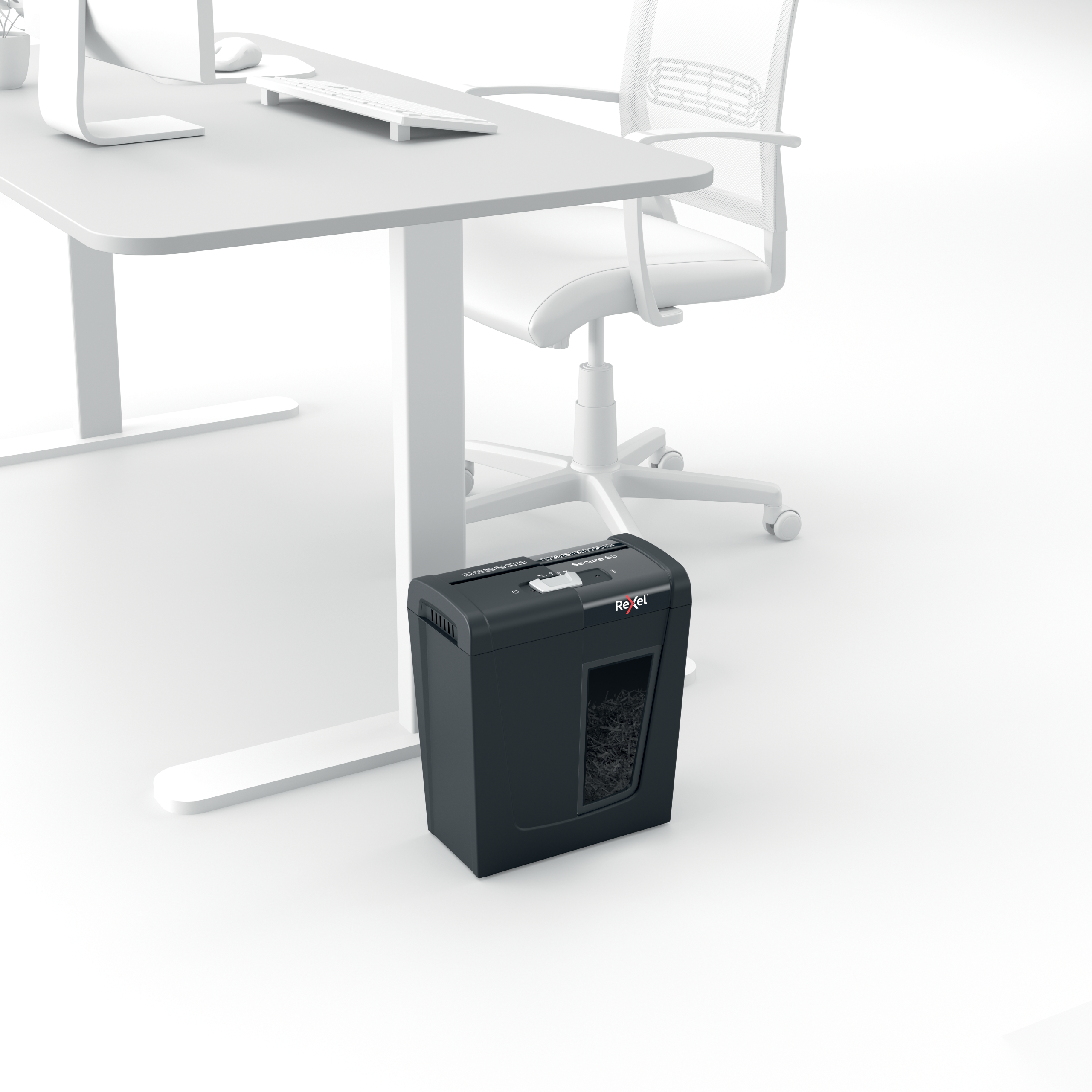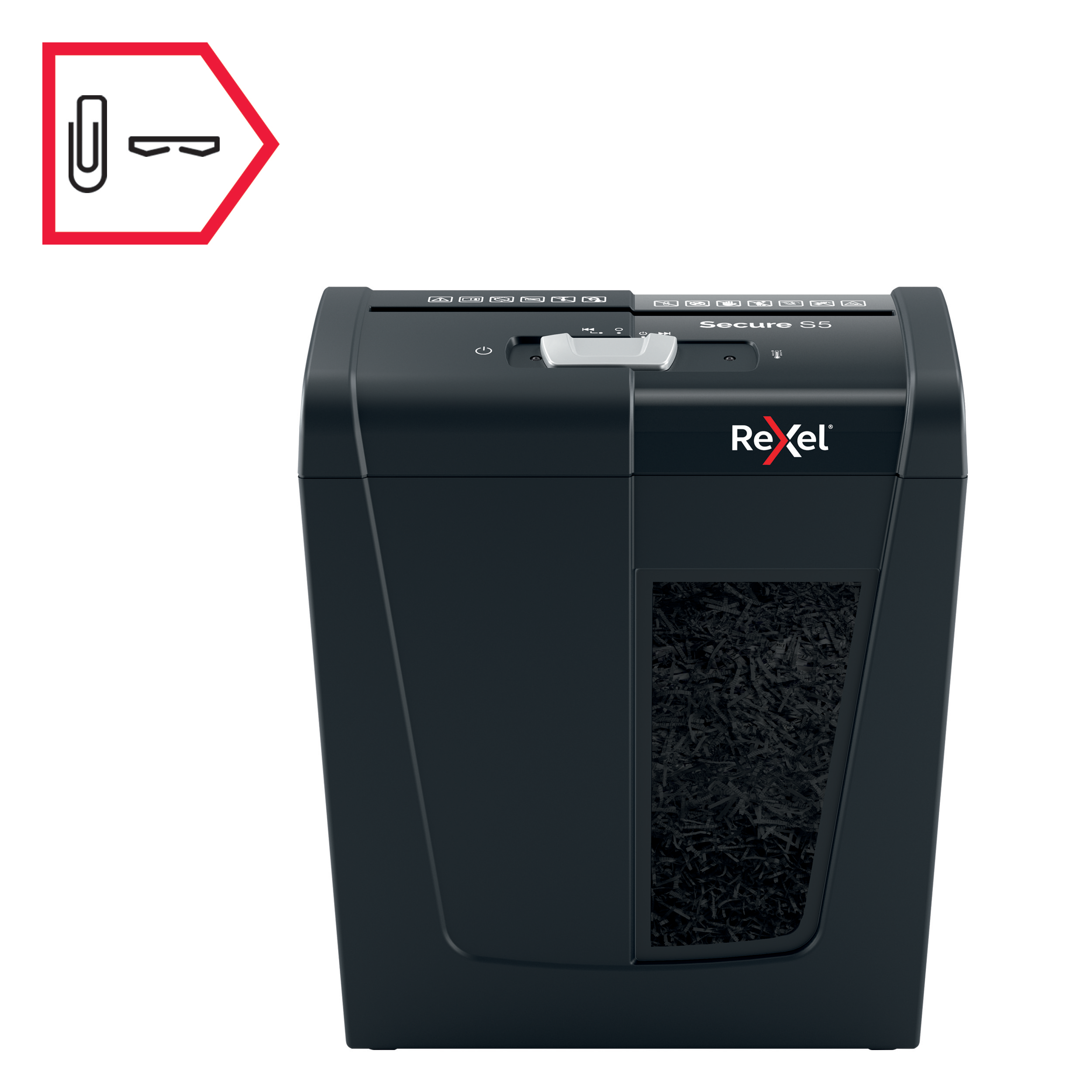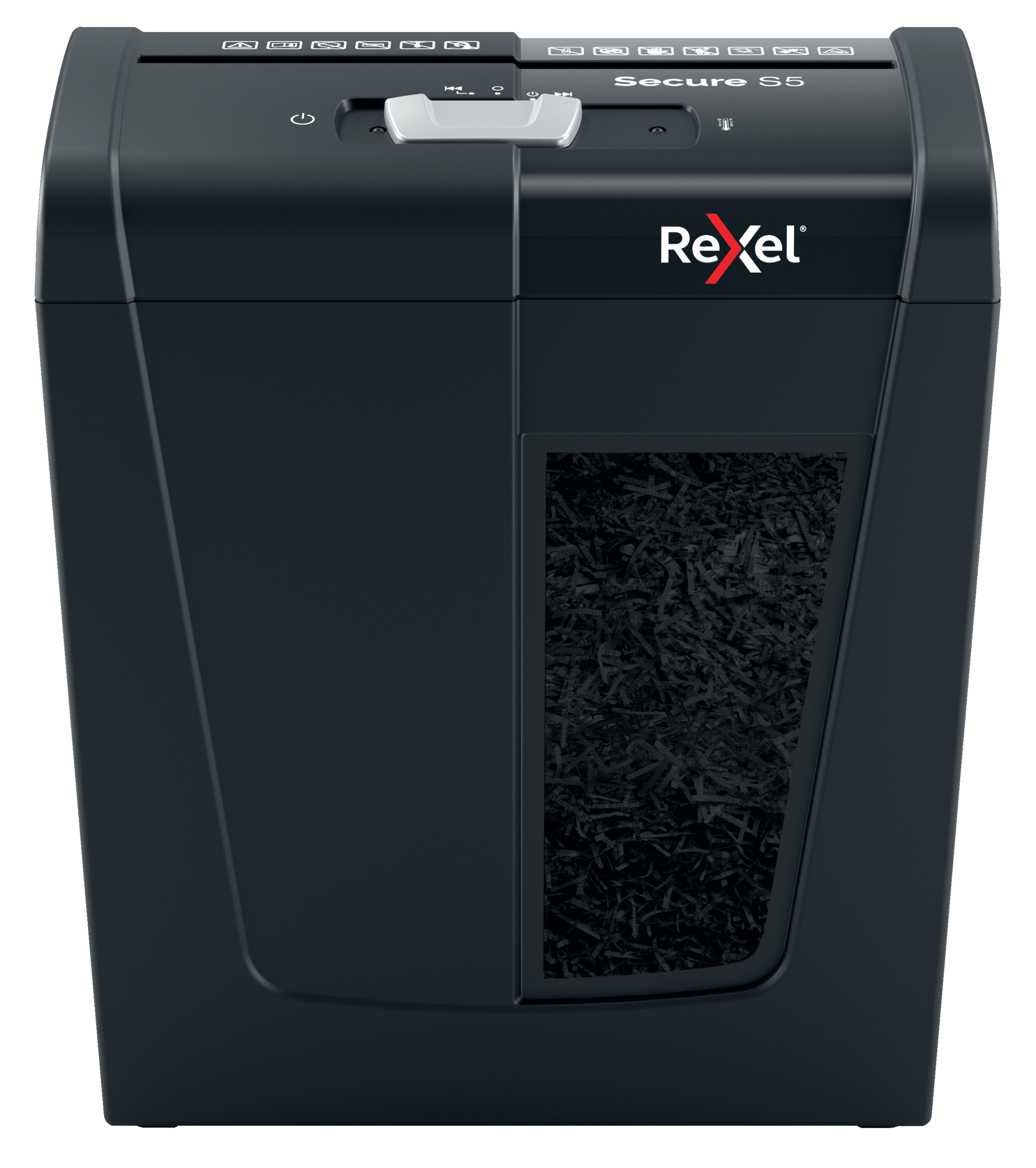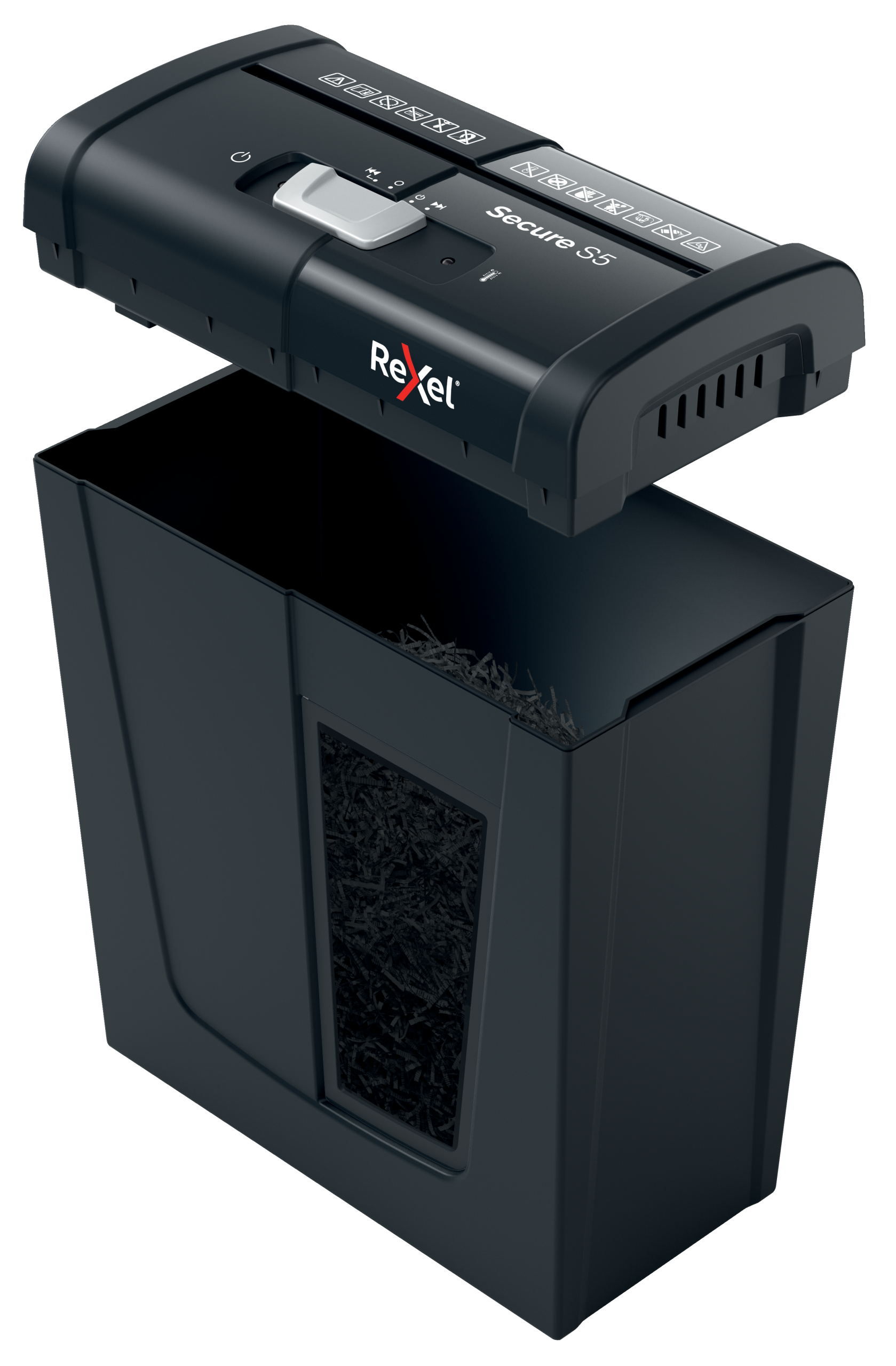 Rexel Secure S5 makulator makulerer op til 5 stk A4-ark på én gang. En ideel makuleringsmaskine til hjemmet på grund af sin kompakte og praktiske størrelse. P-2 DIN sikkerhedsniveau strimmelmakuleringsstykker