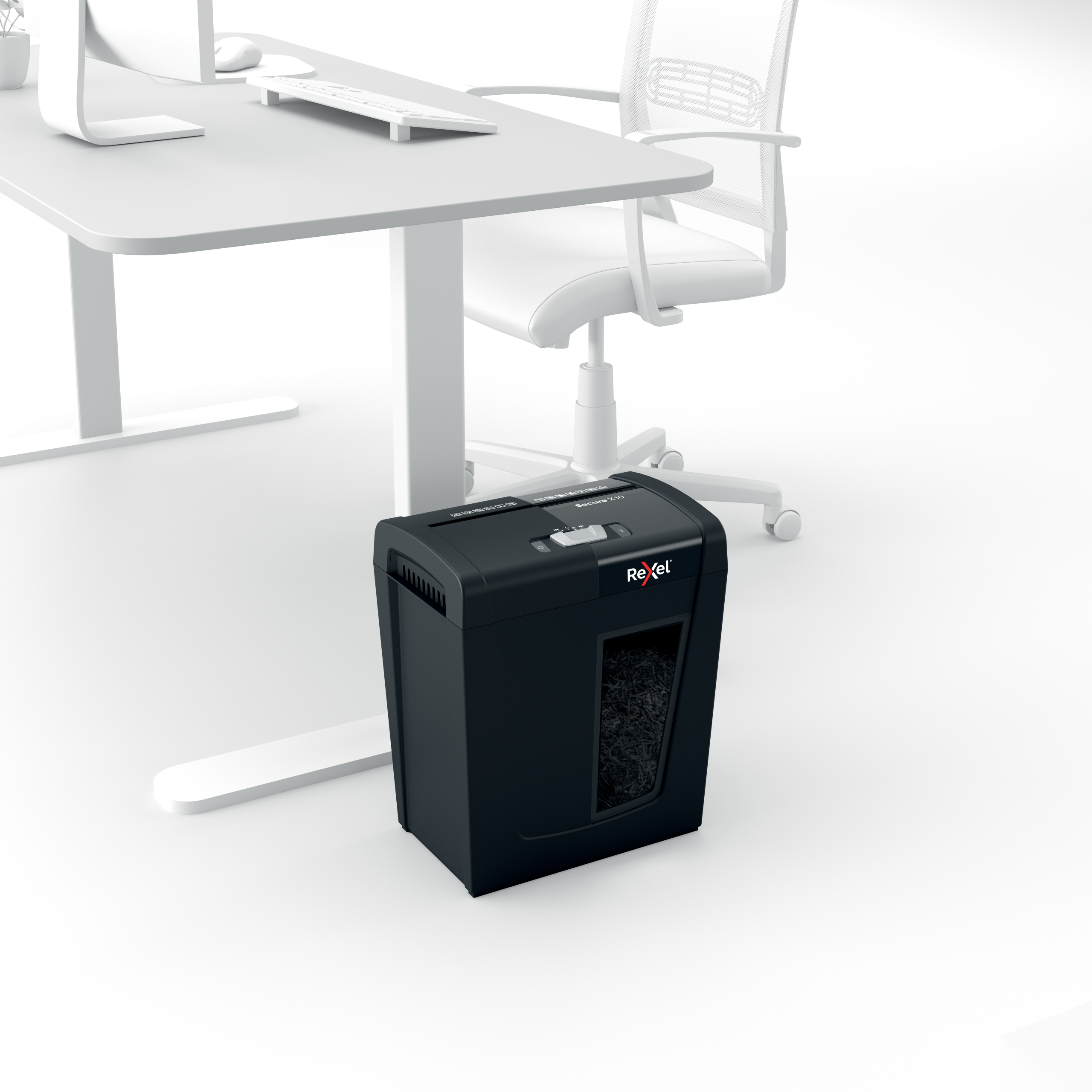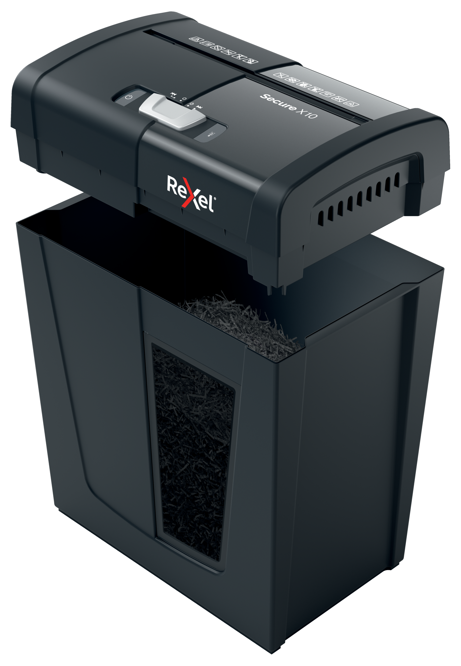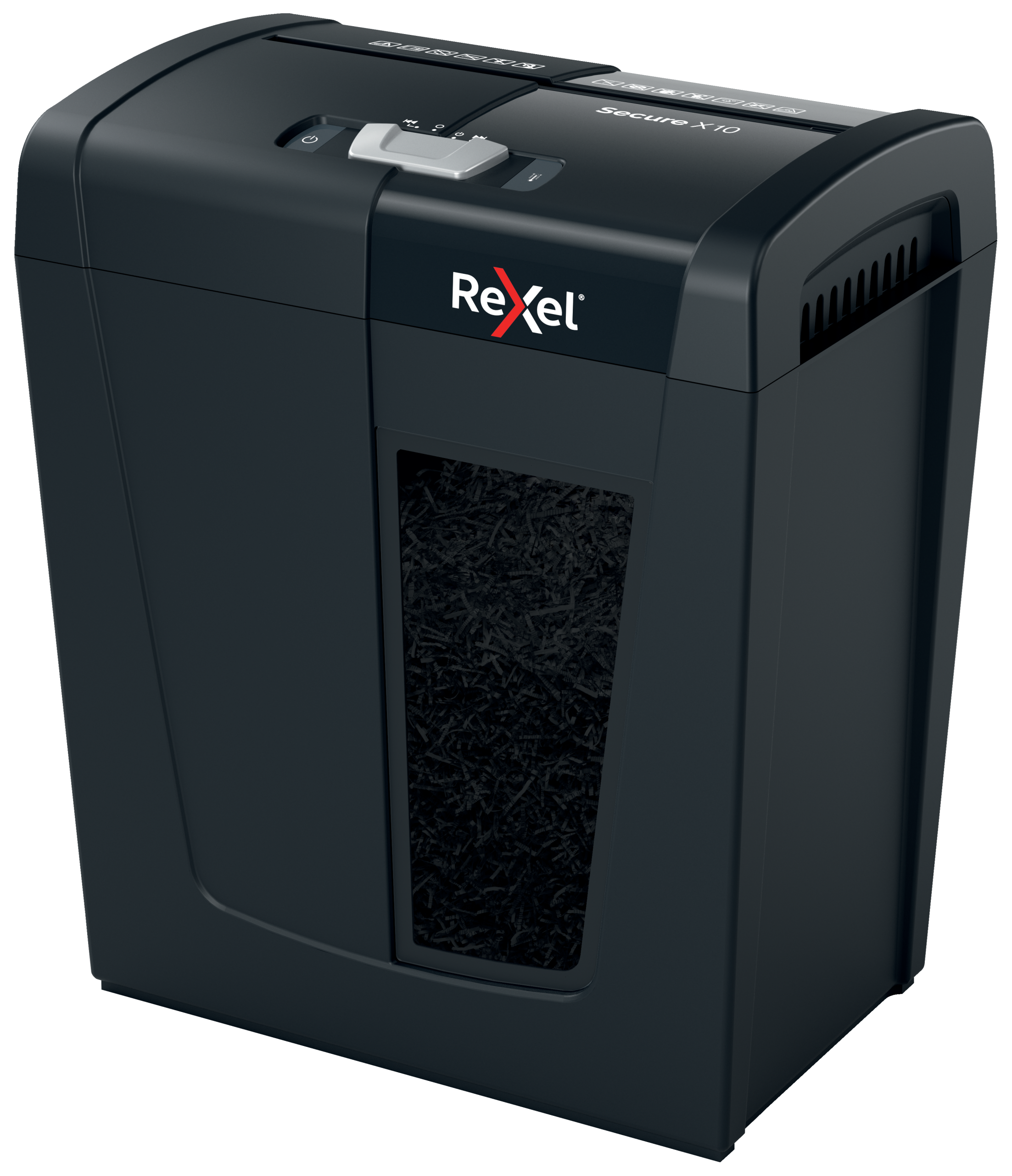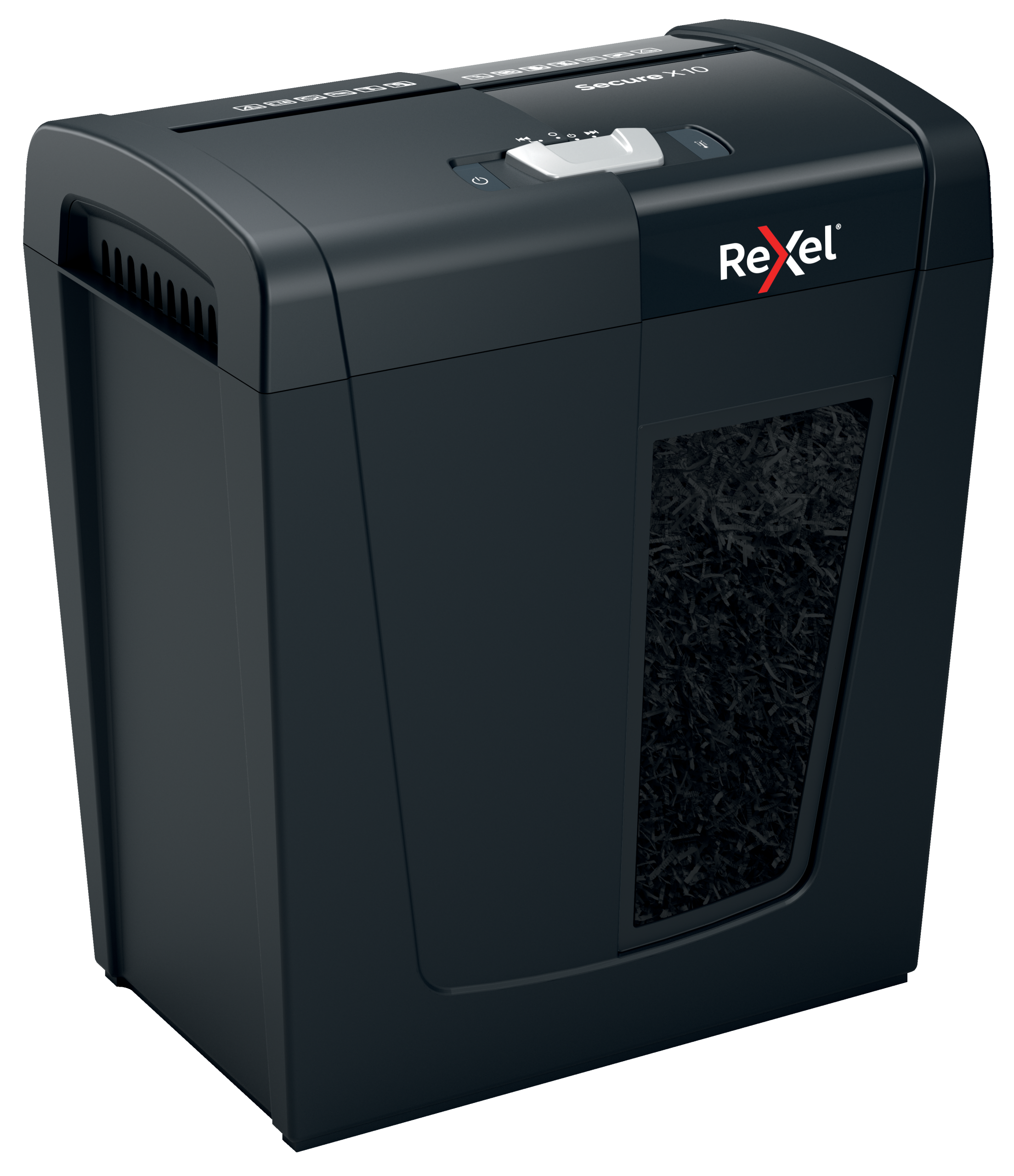 Rexel Secure X10 makulator makulerer op til 10 stk A4-ark på én gang. En ideel makuleringsmaskine til hjemmet på grund af sin kompakte og praktiske størrelse. P-4 DIN sikkerhedsniveau krydsmakuleringsstykker.