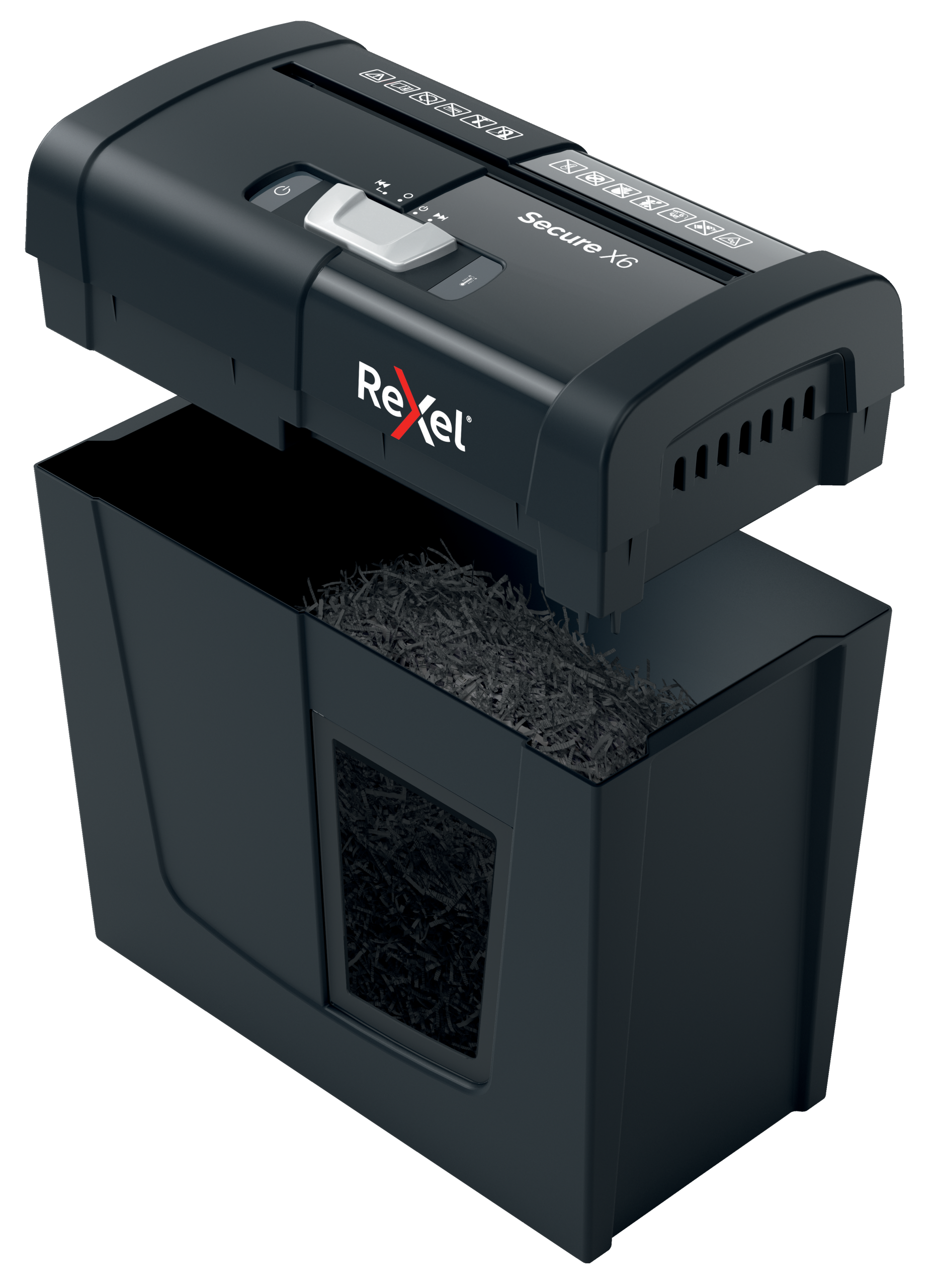 Rexel Secure X6-makulator makulerer op til 6x A4 ark på én gang. En ideel makuleringsmaskine til hjemmet på grund af sin kompakte og praktiske størrelse. P-4 DIN sikkerhedsniveau krydsmakuleringsstykker.