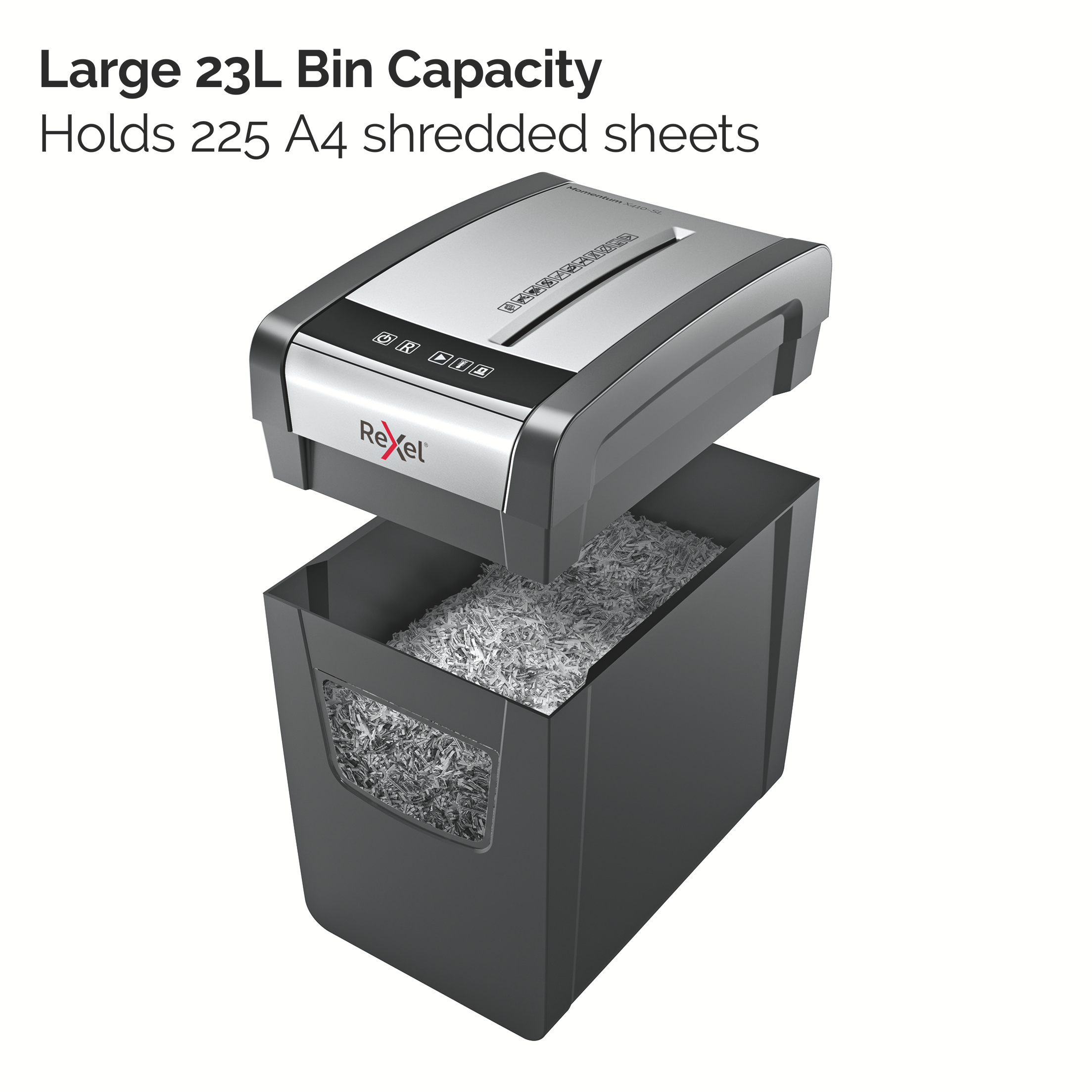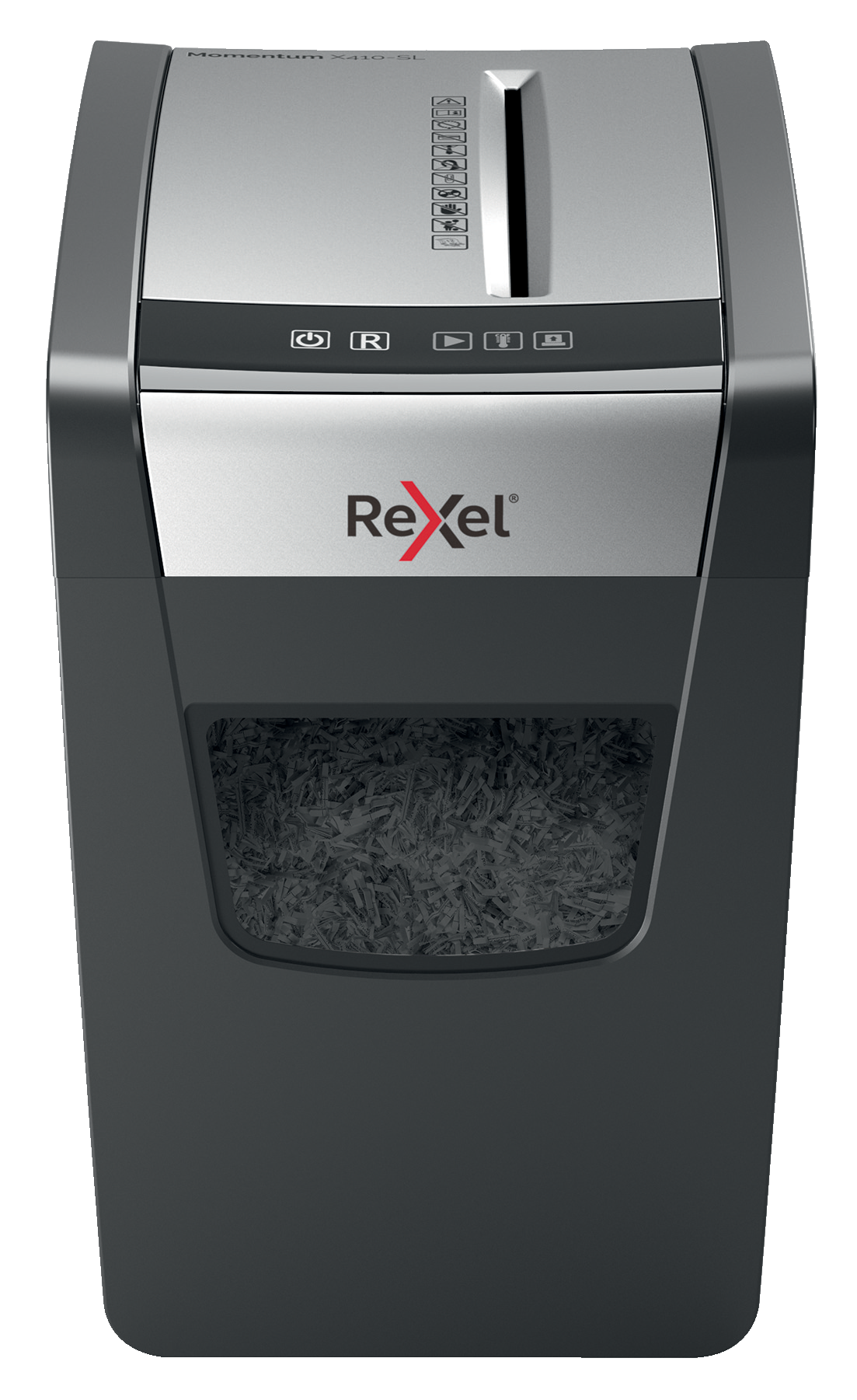 Kraften til at makulere mere! Rexel Momentum X410-SL Slimline makuleringsmaskine – P4, krydsmakulering 4×30 mm stykker, 23 liter beholder kapacitet 225 x A4 ark