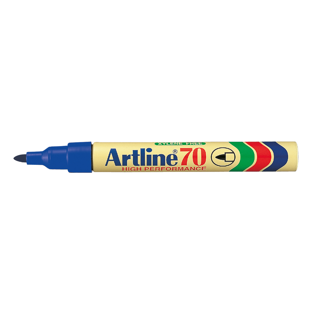 Artline 70 er en sprittusch der kan skrive på næsten alle overflader inkl. træ, metal, plastik og glas. Den konstante blæktilførsel sikrer en ensartet streg, der dækker jævnt, uanset hvilket materiale du skriver på. Spidsen er lavet af hård akrylfiber der ikke bukker, knækker eller flosser. Artline 70 sprittusser fås i sort, blå, rød og grøn.