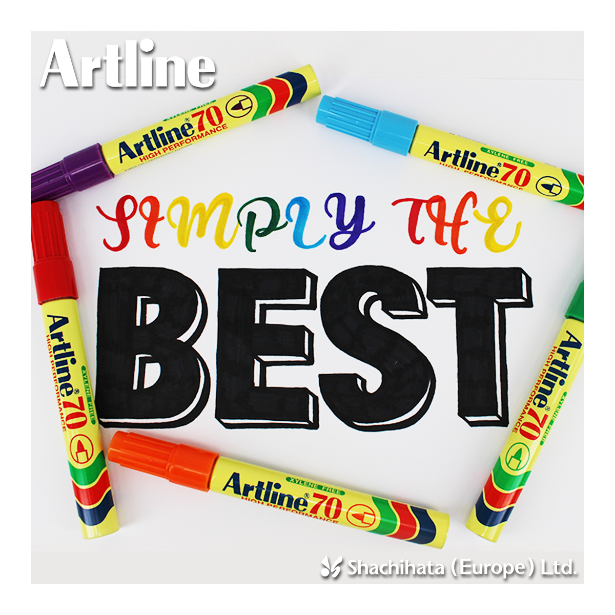 Artline 70 er en sprittusch, der kan skrive på næsten alle overflader inkl. træ, metal, plastik og glas. Den konstante blæktilførsel sikrer en ensartet streg, der dækker jævnt, uanset hvilket materiale du skriver på. Spidsen er lavet af hård akrylfiber, der ikke bukker, knækker eller flosser. Artline 70 sprittusser fås i sort, blå, rød og grøn.