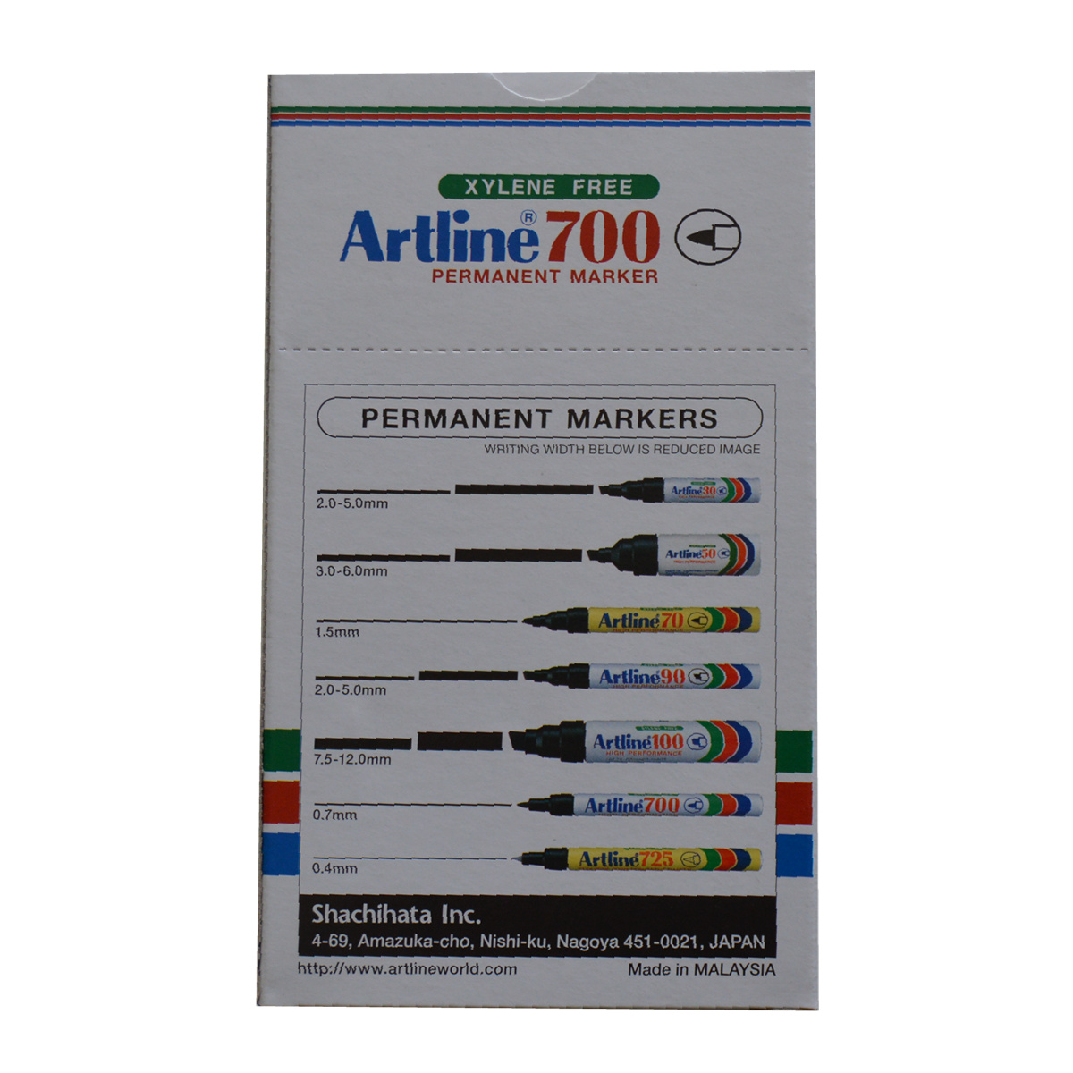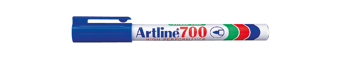 Artline 700 er en sprittusch, der kan skrive på næsten alle overflader inkl. træ, metal, plastik og glas. Den konstante blæktilførsel sikrer en ensartet streg, der dækker jævnt, uanset hvilket materiale du skriver på. Spidsen er lavet af hård akrylfiber, der ikke bukker, knækker eller flosser. Artline 700 sprittusser fås i sort, blå, rød og grøn.