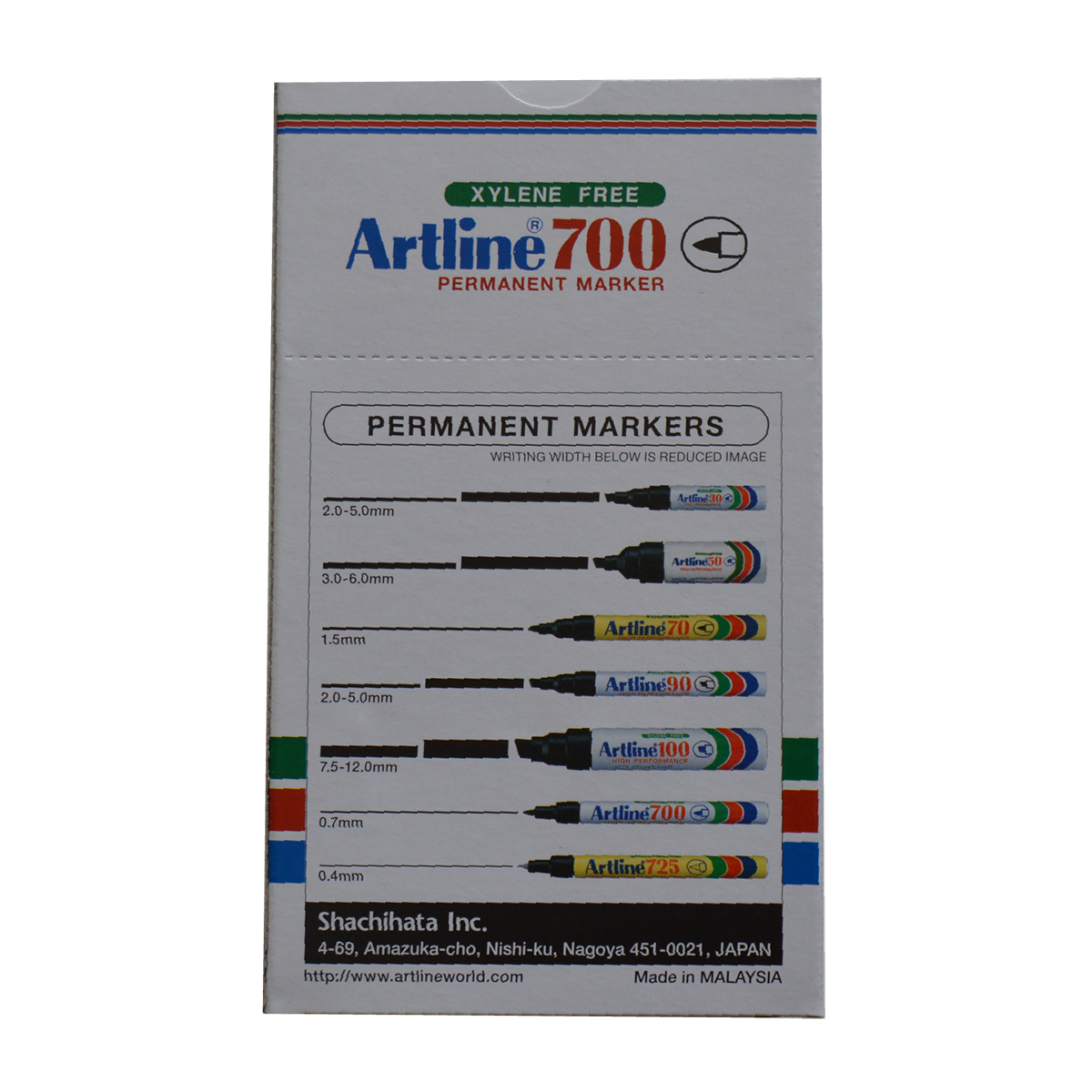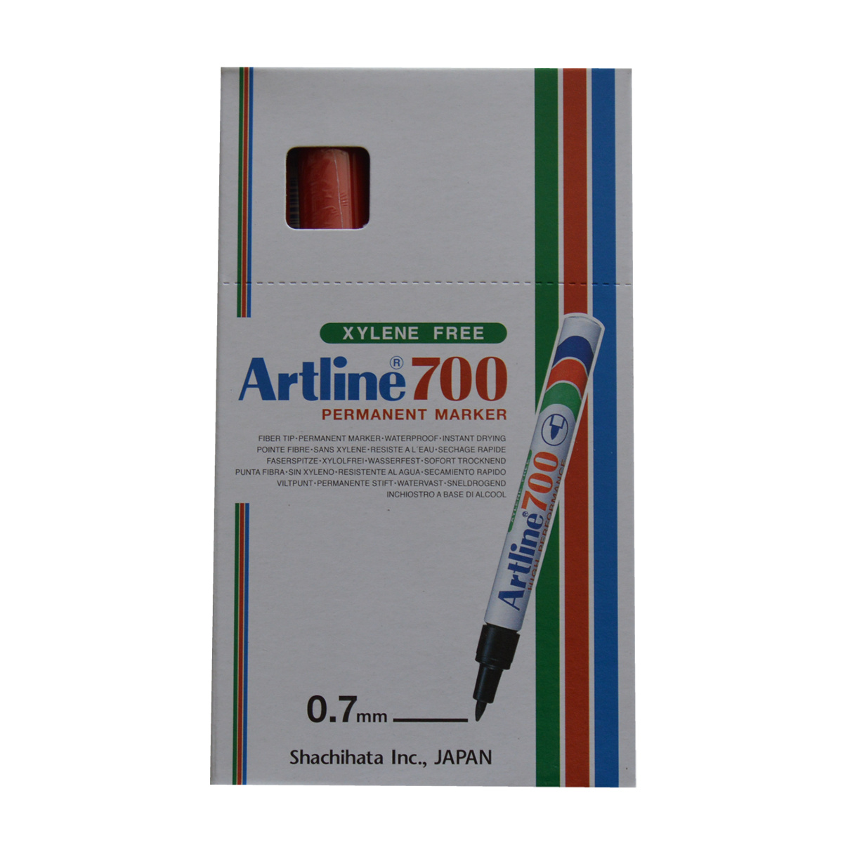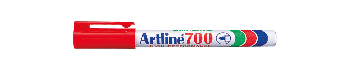 Artline 700 er en sprittusch, der kan skrive på næsten alle overflader inkl. træ, metal, plastik og glas. Den konstante blæktilførsel sikrer en ensartet streg, der dækker jævnt, uanset hvilket materiale du skriver på. Spidsen er lavet af hård akrylfiber, der ikke bukker, knækker eller flosser. Artline 700 sprittusser fås i sort, blå, rød og grøn.