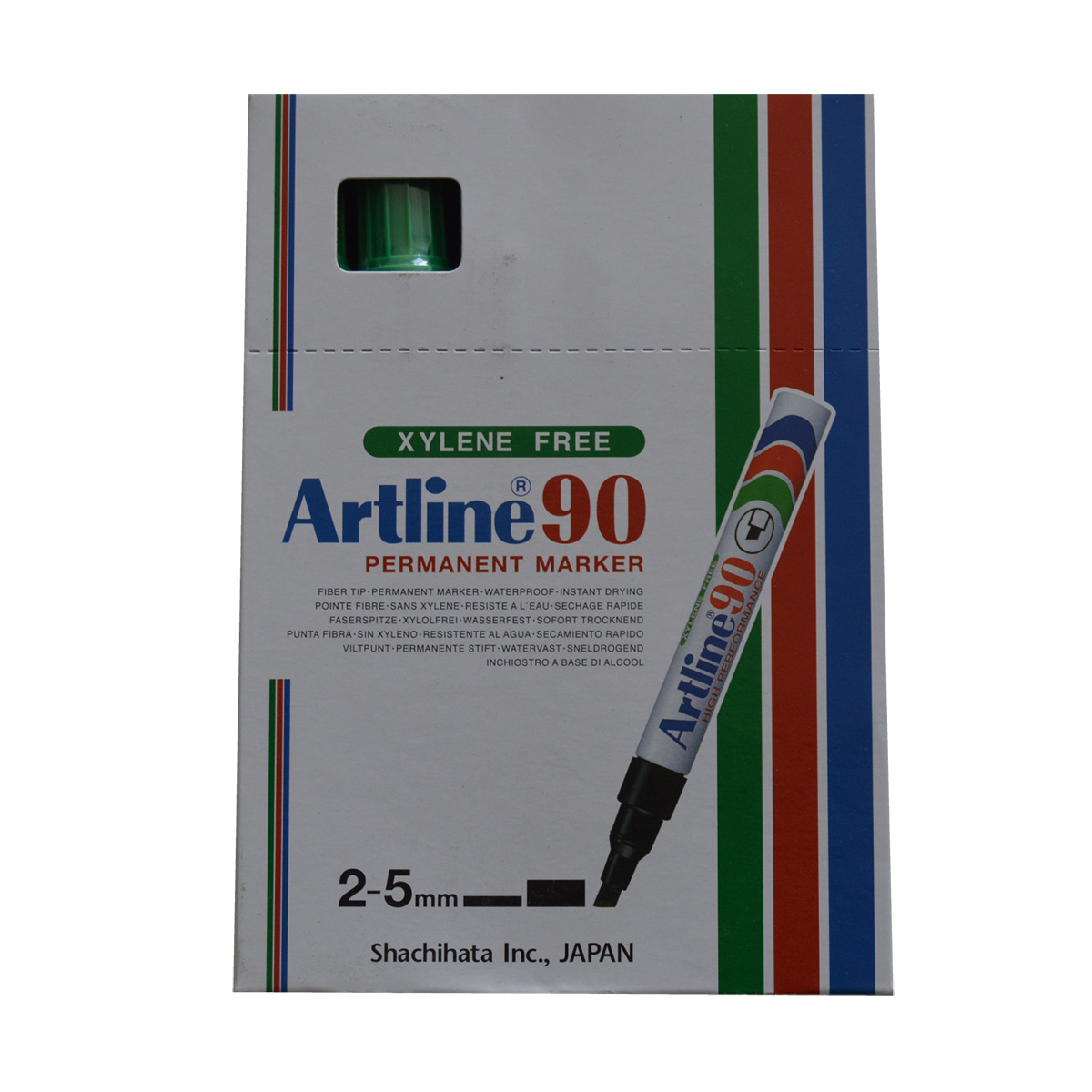 Artline 90 er en sprittusch med firkantet spids, der kan laver streger på 2 mm og 5 mm, alt efter hvordan du vender den. Blækket er vandfast, og permanent på de fleste overflader. Artline 90 sprittuscher fås i rød, sort, grøn og blå.