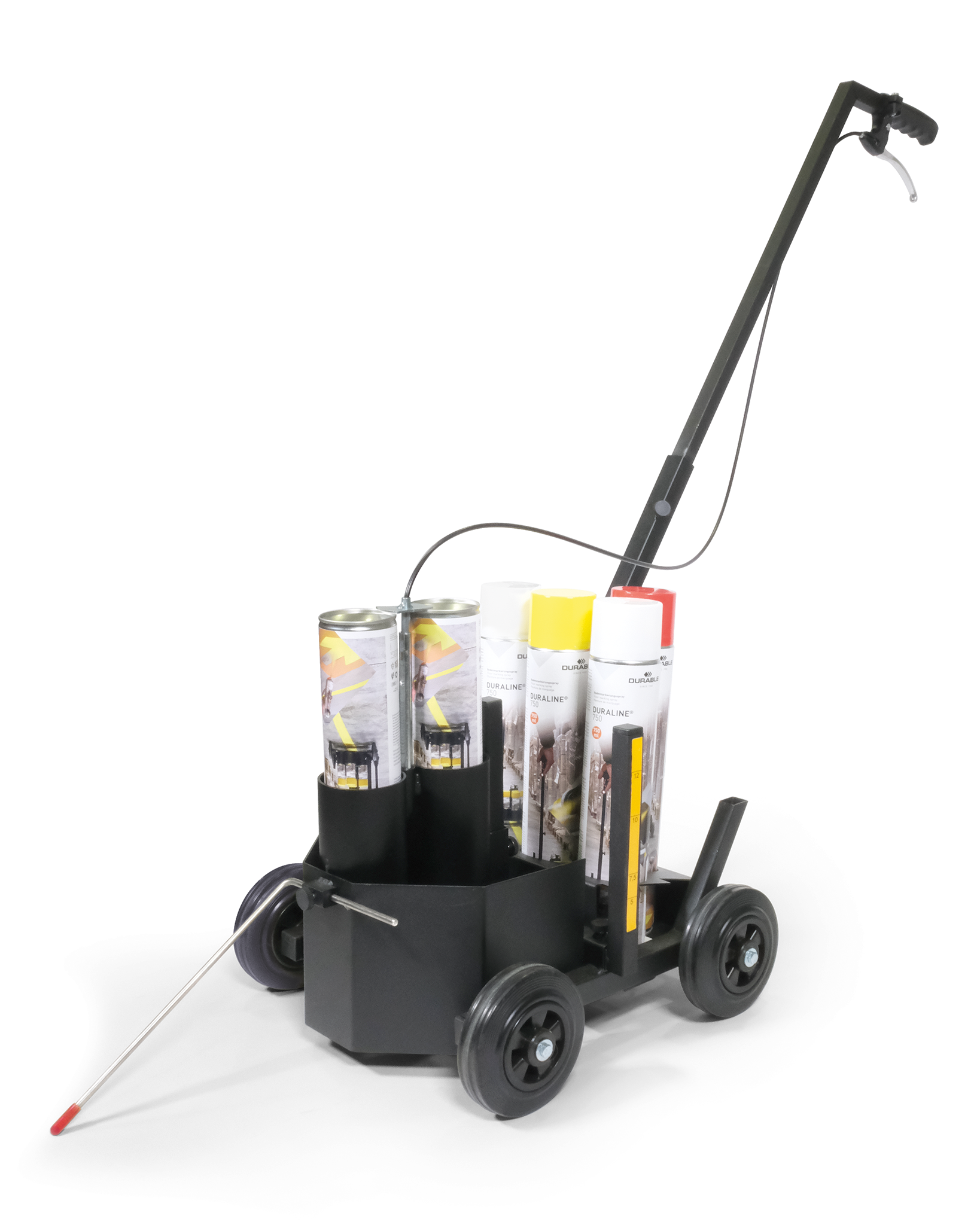 Markeringsvogn duraline® easytrackMarkeringsvogn med trinløs justerbar linjebredde. Passer til sprayflasker (500-750 ml) med markeringsfarve.