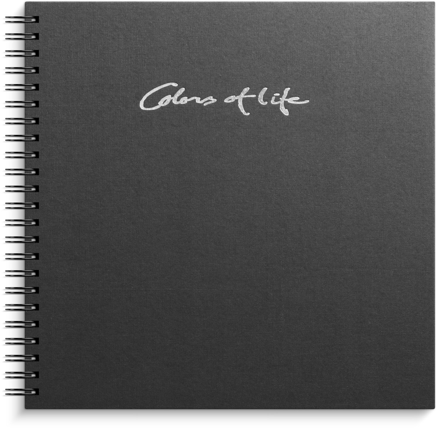Mayland, Fotoalbum Colors of life, sort, 300×300 mm. Omslag i karton med struktur. Ulinjeret, 250 g, 24 sorte kartonblade. spiralindbundet. Format: 300×300 mm.