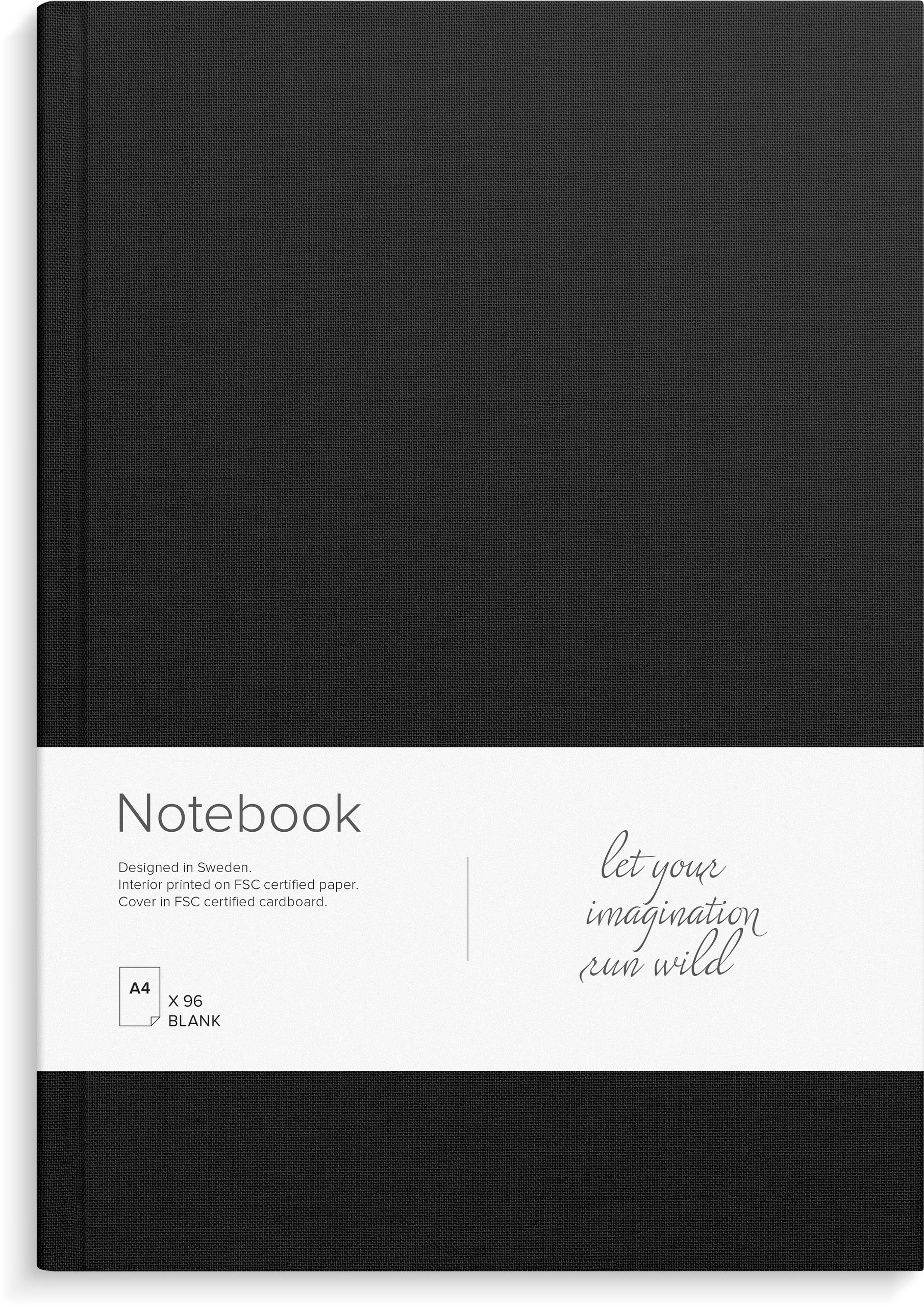 Inbundet notesbog i grå tekstilpræg, ulinj, 90 g, 96 blad. FSC®. Format: A4.