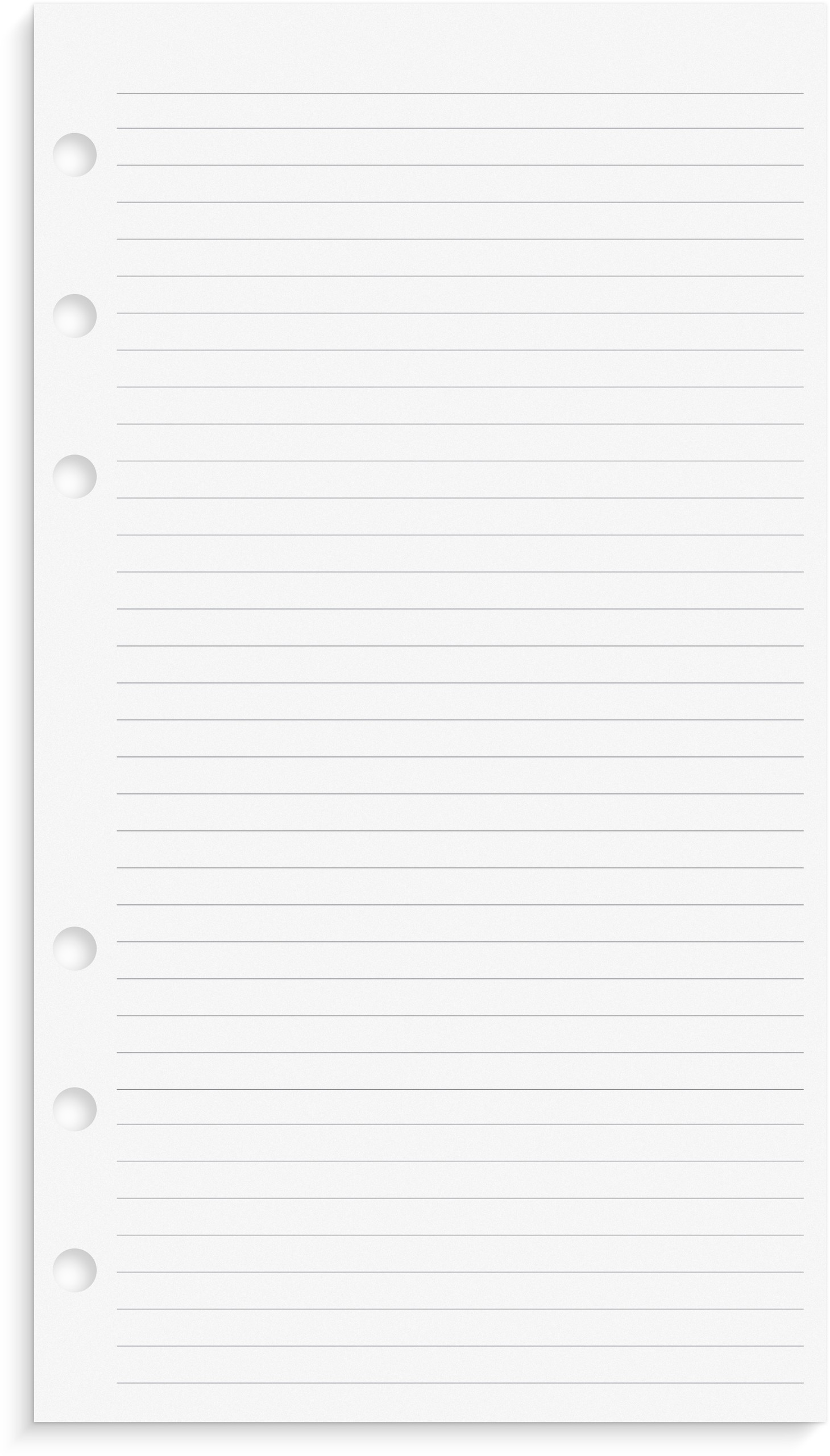 Tilbehør systemkalender PP. Linjeret, 32 blade m. huller. Format: 95×170 mm.