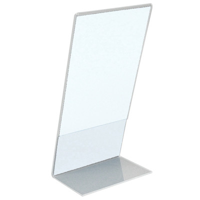 Menuholder produceret i transparent akryl. Skrå, fritstående.