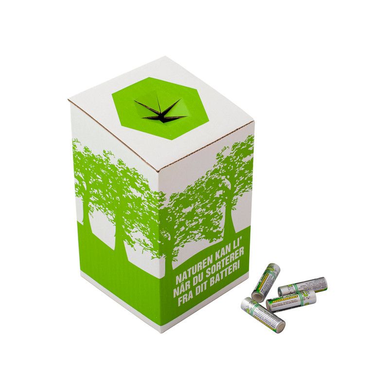 Miljøkasse til brugte batterier. Gør det nemt at sortere dine batterier fra det andet affald, så du kan få afskaffet dem på den rigtige måde.