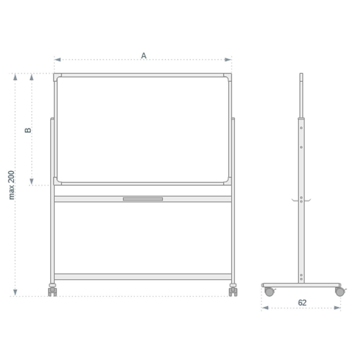 Magnetisk. Lakeret overflade. Ridsefast og rengøringsvenlig. Let at skrive på. Aluminiumstel og ramme. Leveres komplet med aluminium pennebakke.